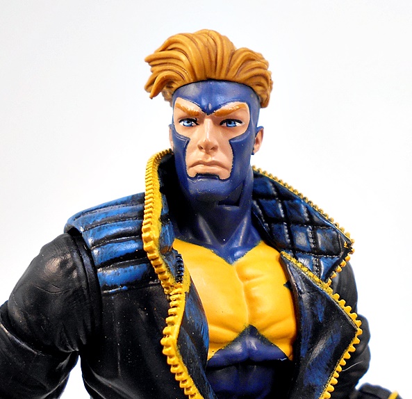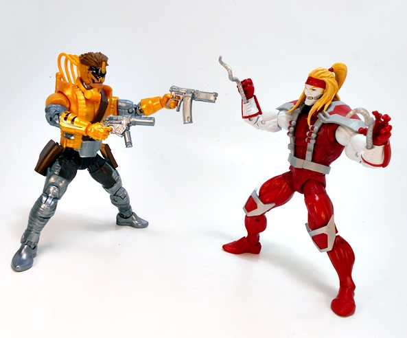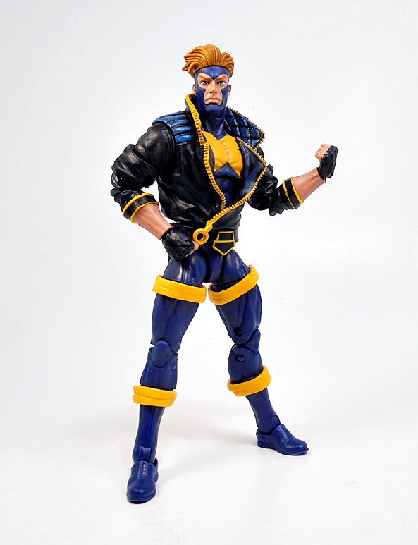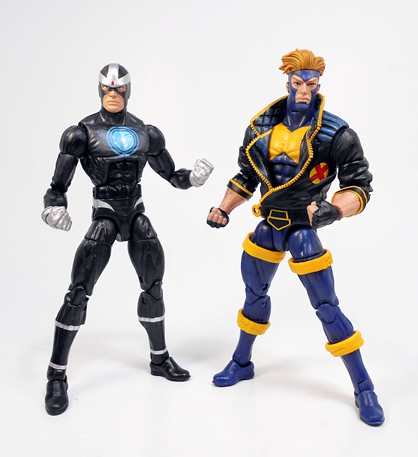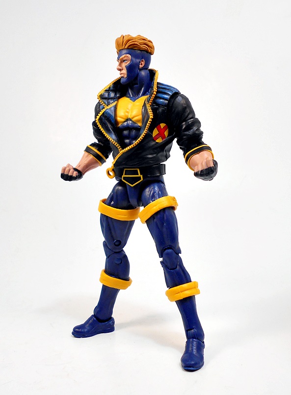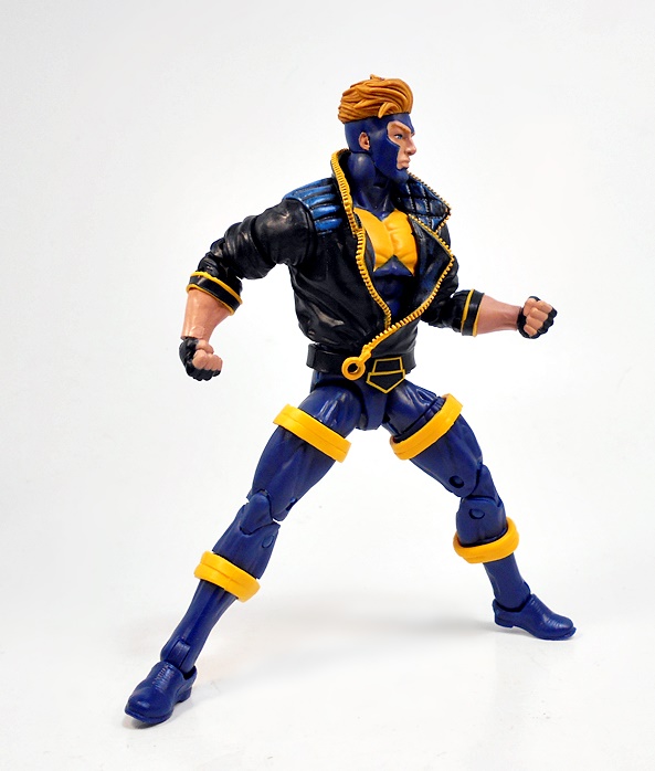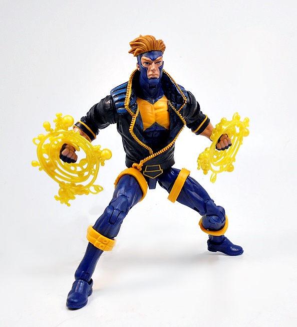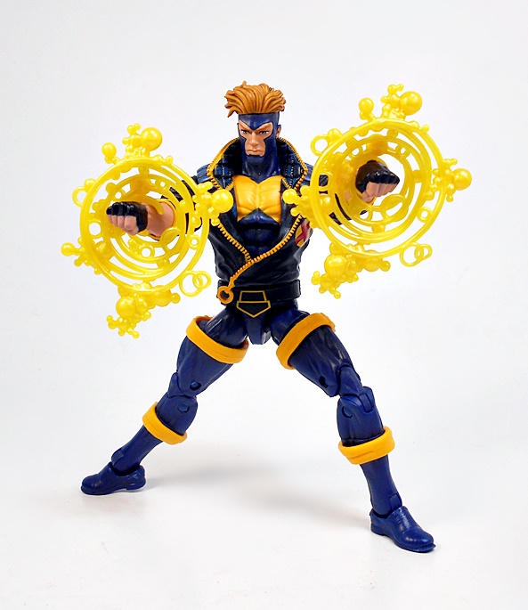 Unlike the other two figures here, this is Pietro’s first appearance in the modern Legends line and he’s looking great. I do love the look of this suit, even if it is achieved entirely through paint instead of original sculpting. And yup, they went with the blue suit over the green, and I’m totally fine with that. The blue and silver deco is very pleasing to the eye. In addition to the mostly blue body, you get pearlescent plastic for the boots, hands, and and a decent paint match for the rest of the gauntlets. He’s got some black undies, and a silver lightning bolt painted as a belt and shoulder strap. In terms of spray-on costumes, this is about as simple as it gets, but it works well and I’ve got no complaints! OK, there are a few minor chips in the lightning bolts, so I guess that’s one complaint.