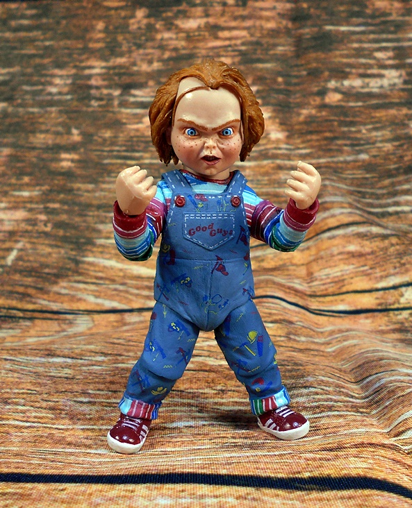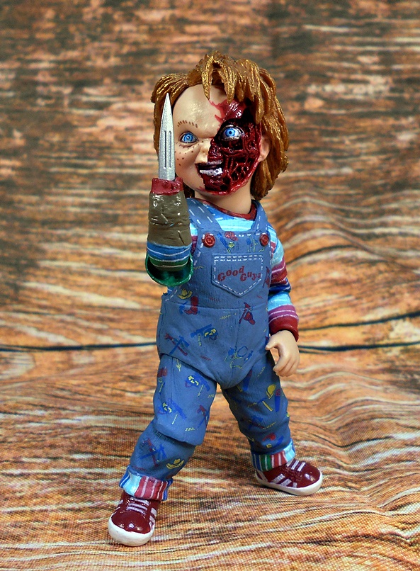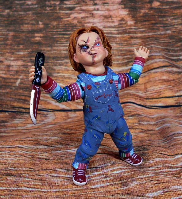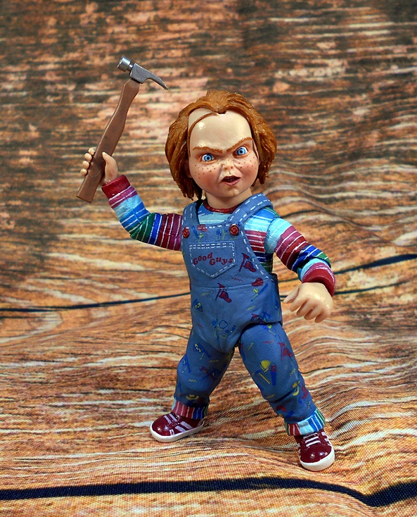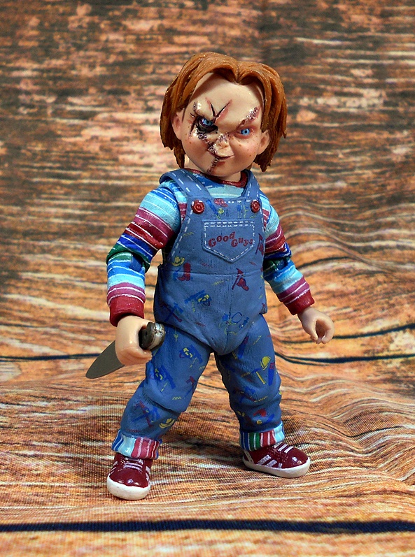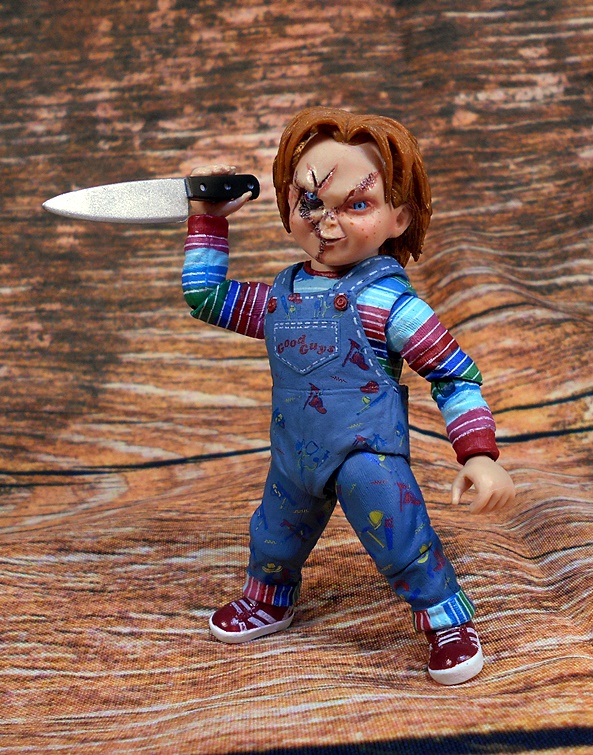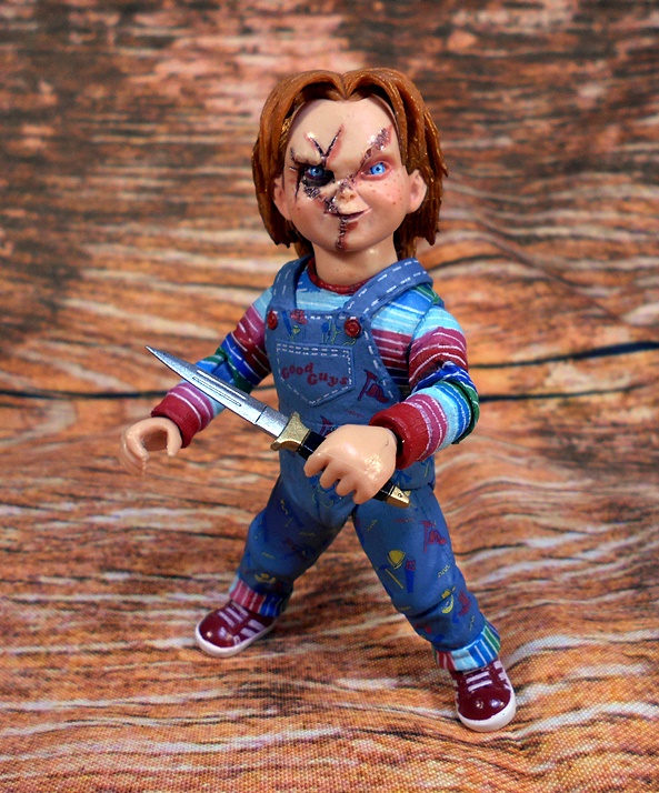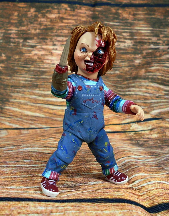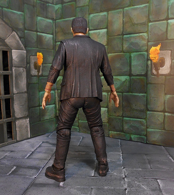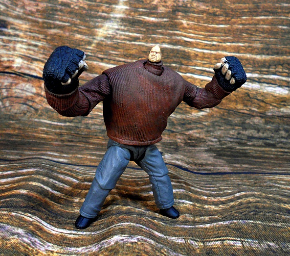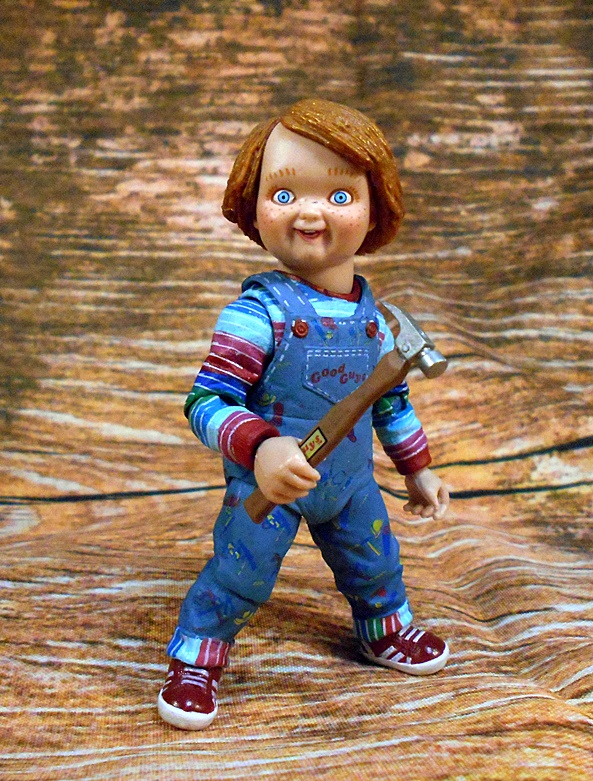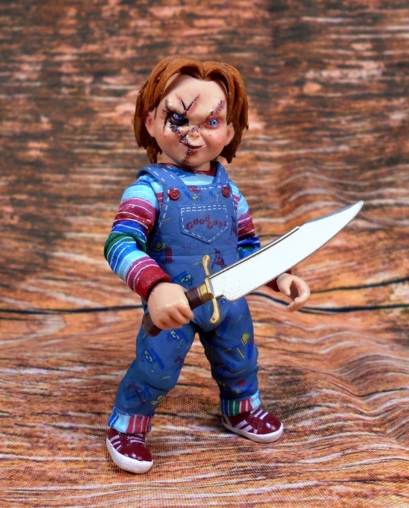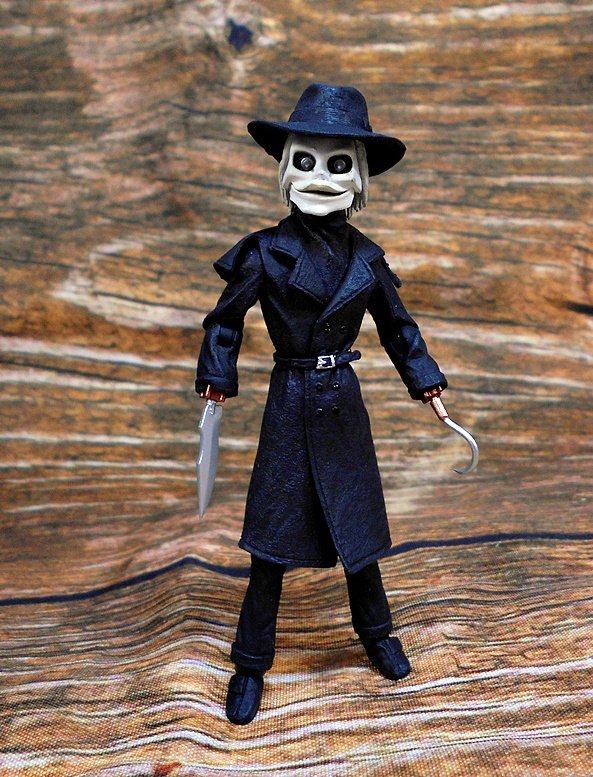The film begins exactly where the first one ends, so we get more or less the same version of Michael for either movie. The one big difference here is the bullet holes where Loomis “SHOT HIM SIX TIMES… SIX TIMES!!!” The Shape dons his dark blue jumpsuit with all the little sculpted stitches that I’ve come to expect from NECA’s plastic tailors. And the rumples! Oh, the rumples! Someone at NECA is just a master at sculpting rumples and wrinkles in plastic clothing. He has a pair of matte black work boots, and his collar is worn up. The jumpsuit that covers the torso is cast in soft plastic and conceals the articulation there. Otherwise, you get plenty of rotating hinges, including doubles in the elbows, which is just fantastic for the stabbing!