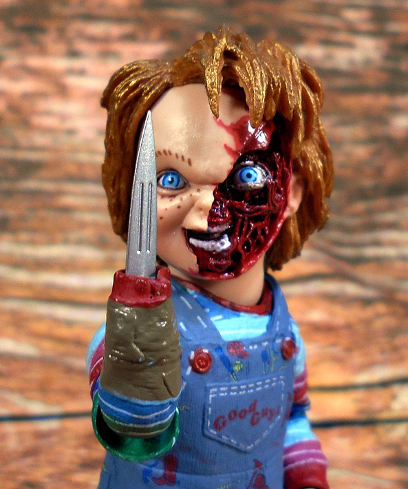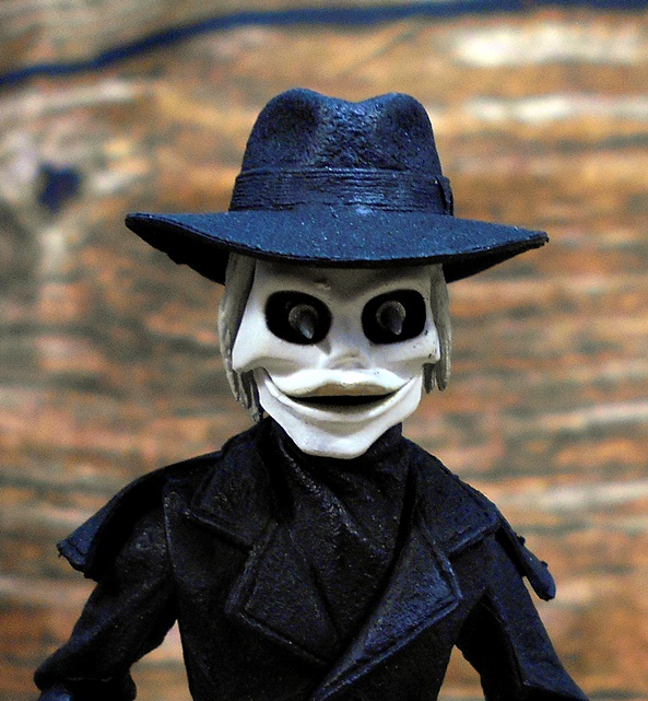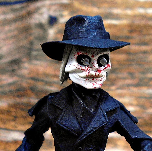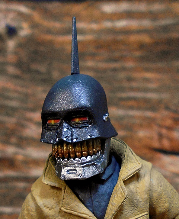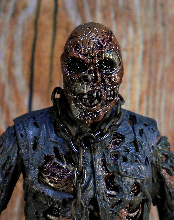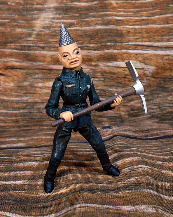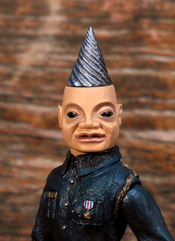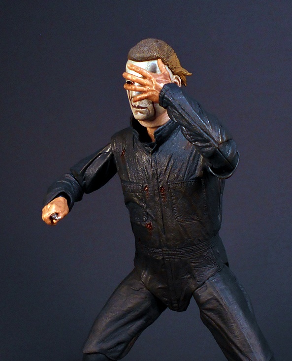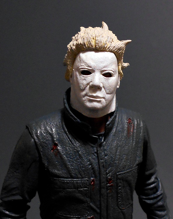 The second head is the poor bastard who just happened to be out on Halloween night dressed just like Myers and wearing a similar mask. Loomis mistakes him for Myers, hounds him into the street, and a cop car plows right into him, setting him on fire. Boy, took about shit luck! This head is certainly not essential, but boy it’s a really nice bonus. The face sculpt appears to be the same, but it’s mostly left unpainted. There are no visible eyes in the eye holes, which makes it super creepy. The hair is newly sculpted to look more disheveled, and it’s painted blonde.