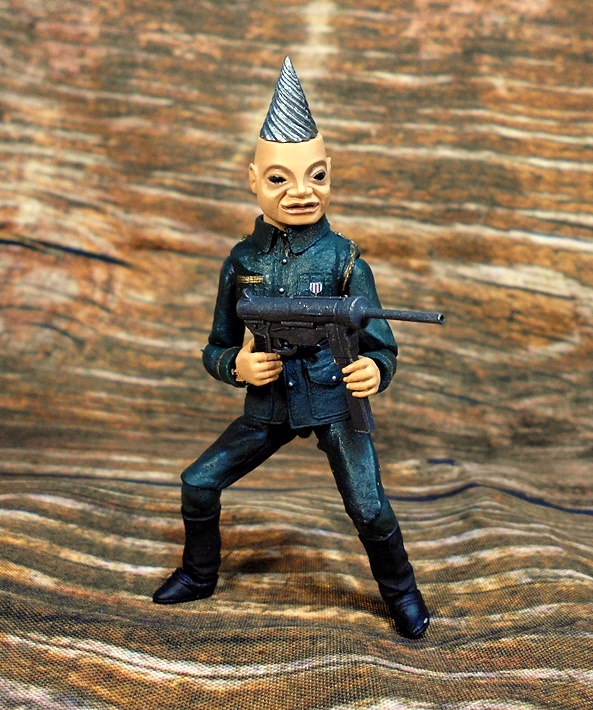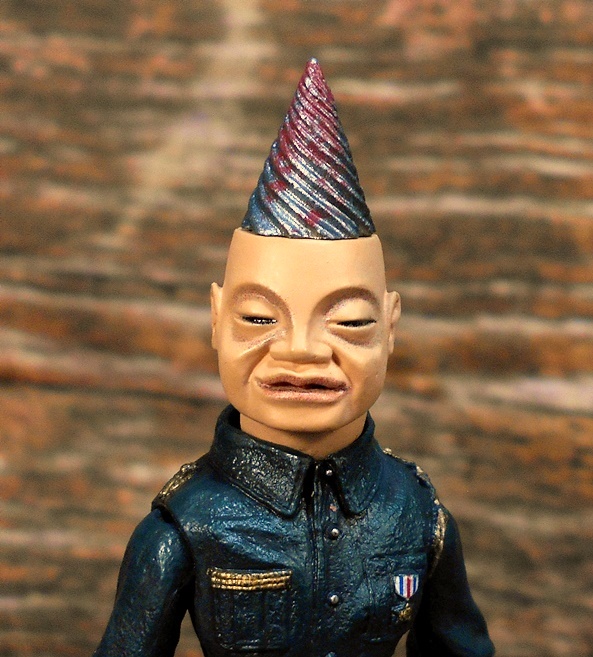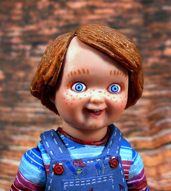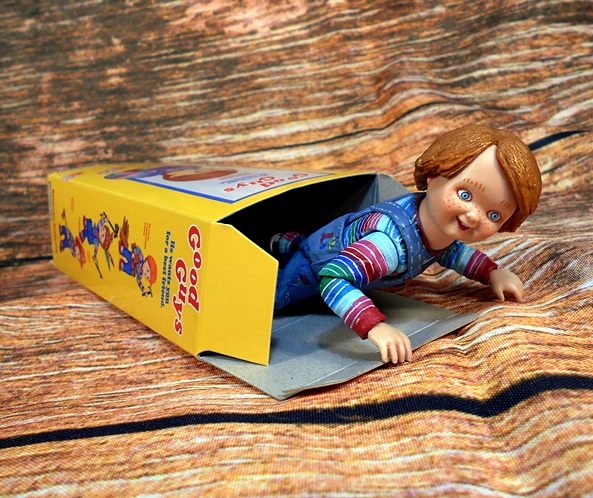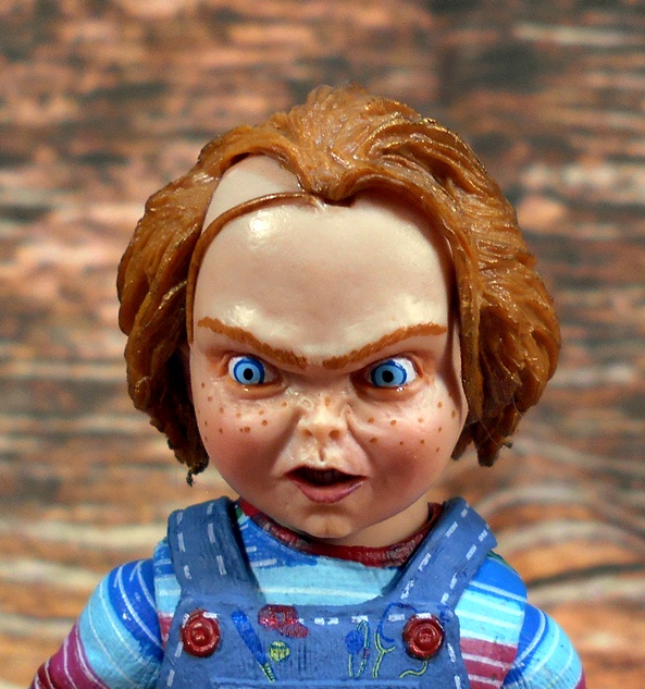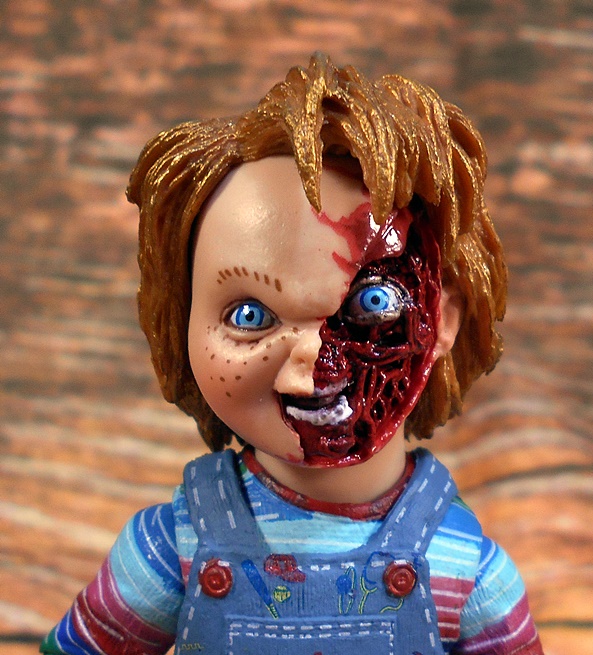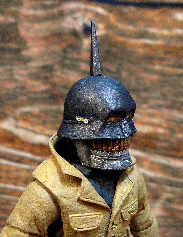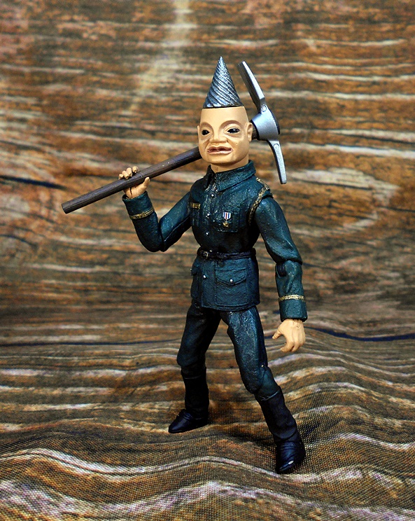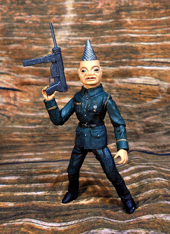 The second head is the poor bastard who just happened to be out on Halloween night dressed just like Myers and wearing a similar mask. Loomis mistakes him for Myers, hounds him into the street, and a cop car plows right into him, setting him on fire. Boy, took about shit luck! This head is certainly not essential, but boy it’s a really nice bonus. The face sculpt appears to be the same, but it’s mostly left unpainted. There are no visible eyes in the eye holes, which makes it super creepy. The hair is newly sculpted to look more disheveled, and it’s painted blonde.