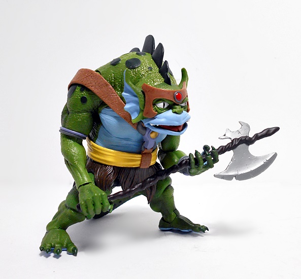 Other than the unusual neck articulation, everything else is pretty standard. You get rotating hinges in the shoulders, elbows, hips, and knees. The ankles are hinged and have generous lateral rockers. The wrists are on hinged pegs so they can be swapped out with the accessory holding hands. The tail will swivel, and he has what feels like a ball joint tucked under that waist sash. The joints work well and do a nice job of supporting his bulk, even if he isn’t resting on his tail. The balance on this figure is actually amazing for such an oddly shaped fellow!