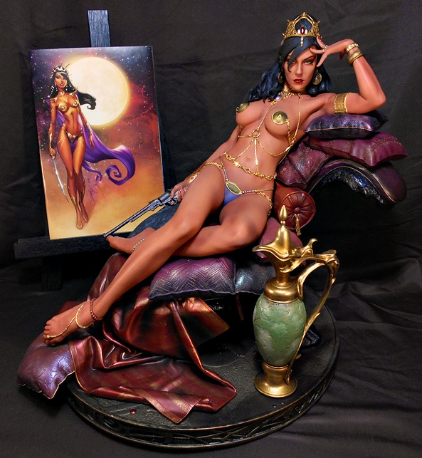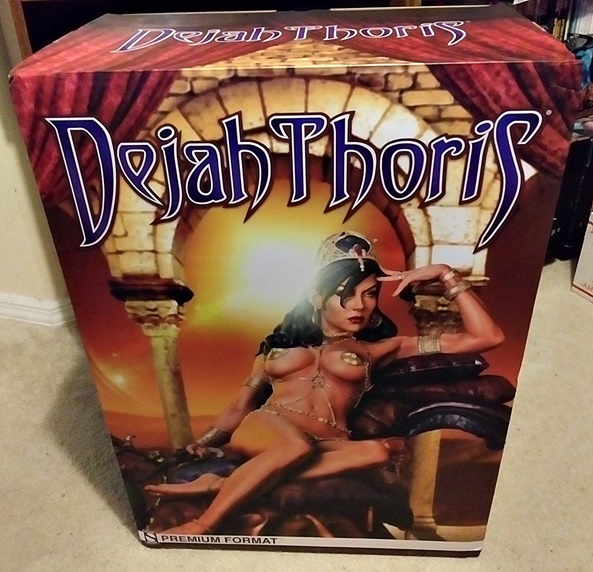 And here she is all set up, and what can I say? Is there any doubt why I fell in love with her at first sight? I’ve been a reader and book collector for most of my life and Burroughs’ John Carter of Mars series captured my imagination at a young age. Likewise, Dejah Thoris was probably my very first literary crush. Over the years, I’ve enjoyed seeing different artists’ visions of her in their work, and it’s always been a dream of mine to own something like this statue, depicting the Red Princess of Barsoom in all her sultry glory!