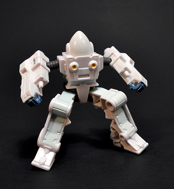 It went to this piece of crap… Daniel Witwicky in his Exo-Suit. This is extremely similar to the Wheelie figure that came with Studio Series Grimlock. And while I wasn’t terribly impressed with that Wheelie, I find this inclusion to be a total misfire. There’s articulation at the shoulders and hips, but he’s stuck in a squatting position, as the figure is mainly intended to just sit on top Slag’s dino mode. I think what I hate most about this figure is that they couldn’t even give him a head sculpt or a sticker showing a face inside the open helmet, but nope… we just got a blank, featureless dome.