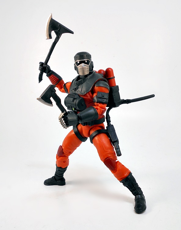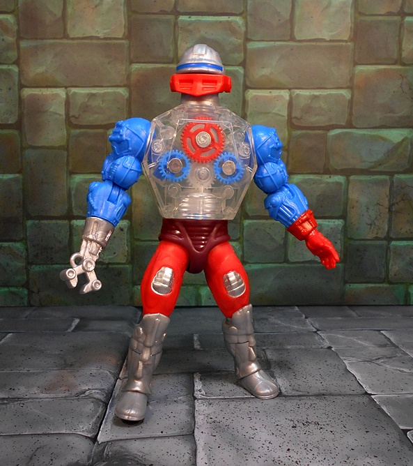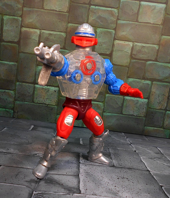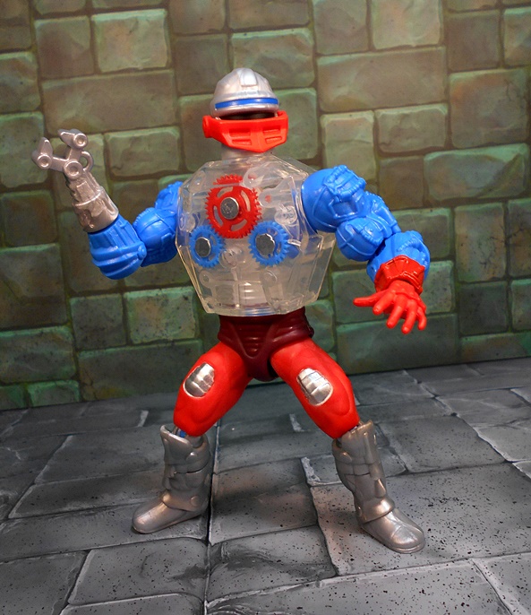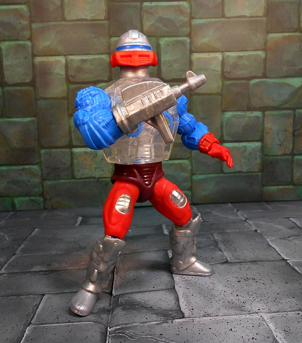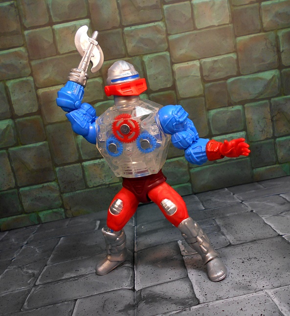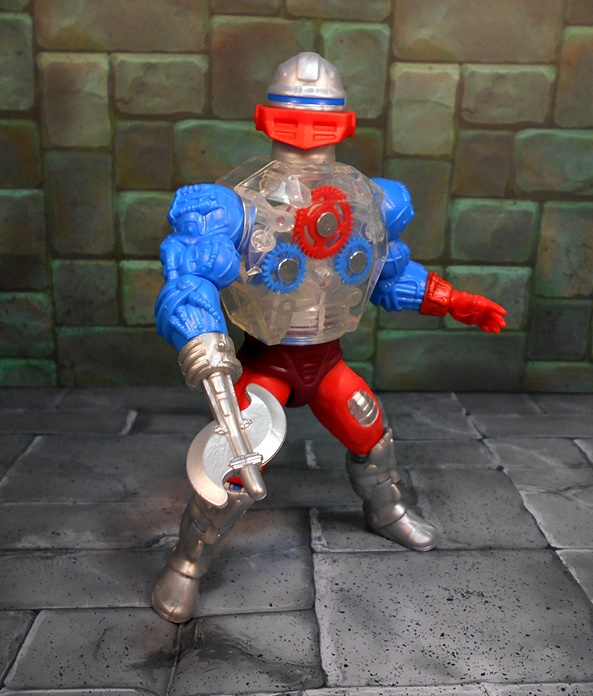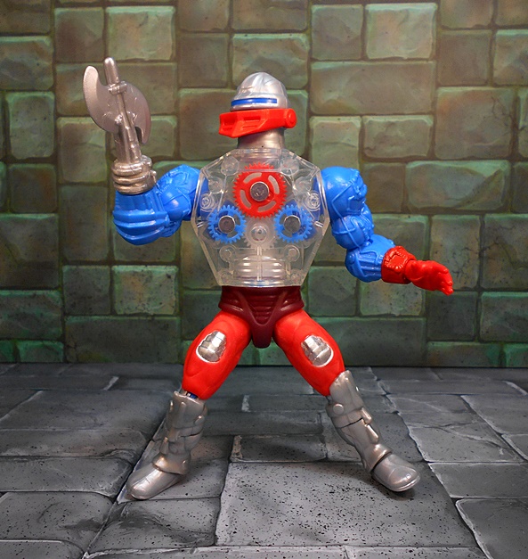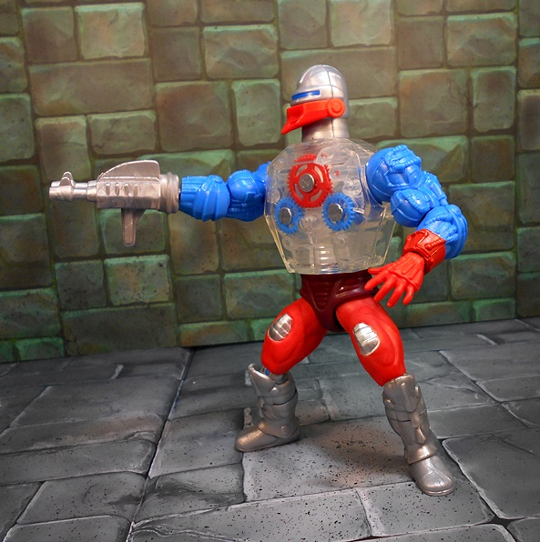 Roboto shares the legs of Trap Jaw, which is appropriate since I’ve always considered Roboto his heroic counterpart. Like Trap Jaw, Roboto has multiple attachments for his left arm, which can be quickly swapped out to adapt to any situation at hand. These attachments include a claw that’s so tiny, it would make Clamp Champ giggle; A double-barreled blaster; And finally, a pretty sweet double-bladed ax. Alas, unlike Trap Jaw, Roboto has nowhere to store the extra bits. Maybe they’re just supposed to retract into him when he swaps them out.