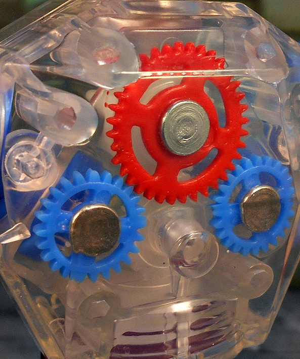 In the world of Eternia, where everyone is a colorful freak, it can be tough to stand out. So, the fact that Roboto does just that really means something! And a lot of that has to do with Roboto’s super cool transparent chest. It’s cast in clear plastic and shows his three primary gears inside. These will rotate when you swivel the figure at the waist in unison with his mouth opening and closing. I’ve never been a big fan of action gimmicks in my figures, but this is one that I can get behind! In addition to those visible internal gears, Roboto has some technological tidbits sculpted into his arms. I dig the coloring here, as it’s very vibrant and eye-catching. The blue and orange contrast beautifully, and the silver paint looks outstanding.