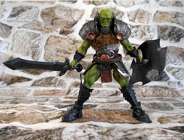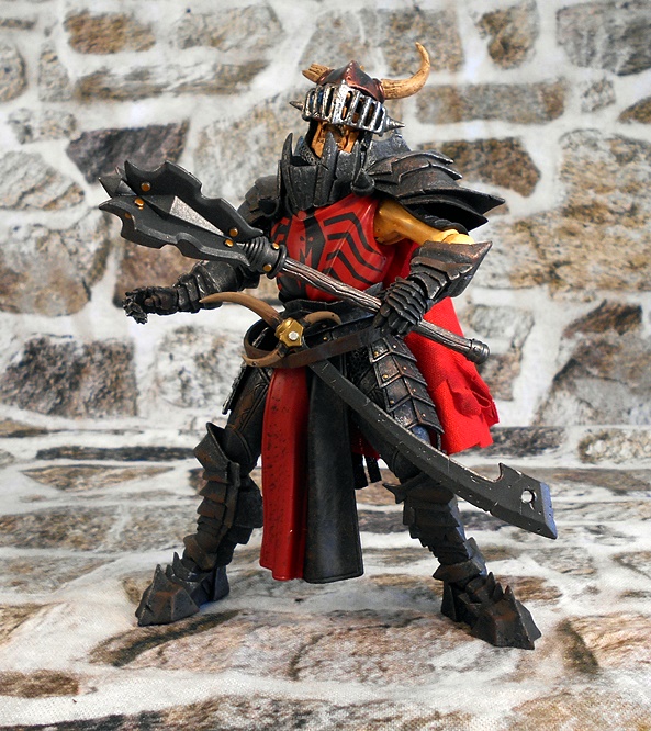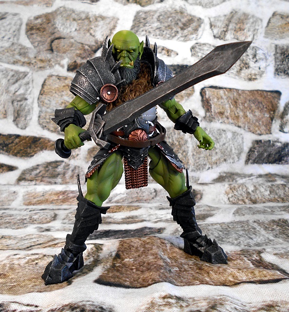 Jaga comes with a few accessories, but two of them I’ve seen before. Sort of. You get the Sword of Omens in both the sleeping dagger version and its aroused sword form. In addition to his relaxed hands, Jaga comes with two additional pairs to help him interact with the swords: One has forward hinges, and the other the normal side-to-side hinges.