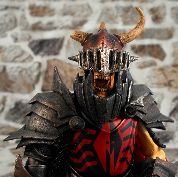 You get a whopping three heads with this figure. The one that he has on in the package is your regular vanilla Jaga. It’s my guess that this will be the default for a lot of collectors out there, and it looks great. You get some sharp printing on the eyes, a well-sculpted beard, bold nose, and his skull cap helmet with a pike jutting up from the top.