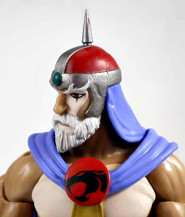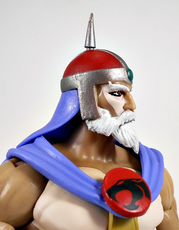 The second head is old man Jaga, and I happen to like this one a lot too. He looks a little more gaunt, with his cheeks sucked in quite a bit. He lacks the vertical hashes under his eyes, and his eyes are a little narrower and lack a bit of the spark from the younger version. His eyebrows are less stylized, and his beard is a bit more bushy and unkept. He also looks like he might be just a wee bit tired of Lion-O’s shit. The helmet, on the other hand, is the same as the previous head. I may actually go with this one as my default display head, but I haven’t decided yet.