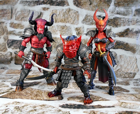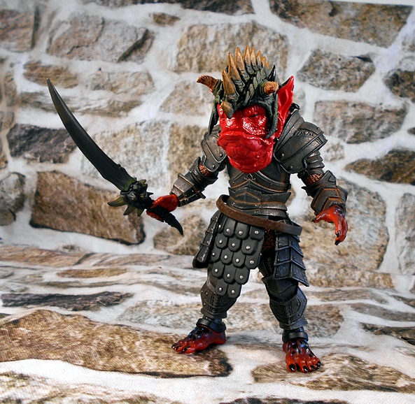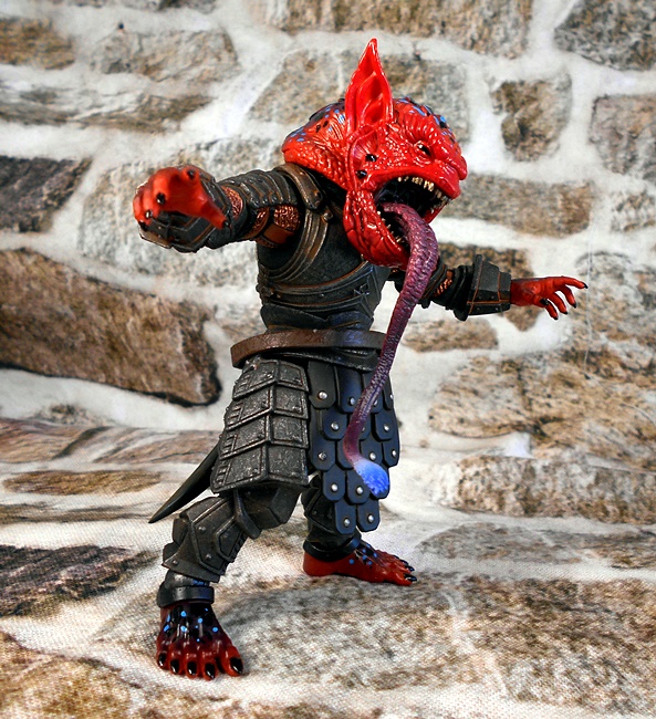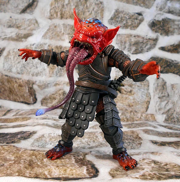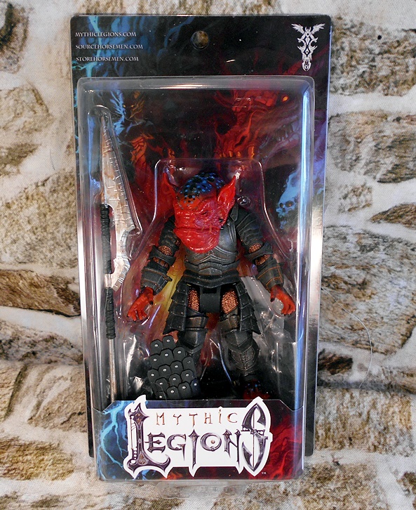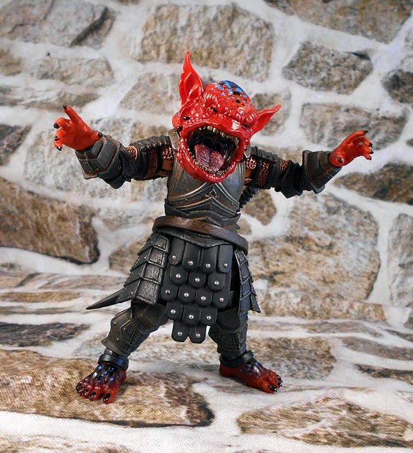 The Arethyr Wave has given us a number of unholy abominations, including Belphagorr and Malephar. The Helphyre Goblin is a revoltingly hellacious half-pint. They are said to be a dark mirror of the Bog Goblins that are native to Mythoss, only these guys have a habit of spewing boiling plasma vomit, making me wish I had a tub of red slime kicking around here. My Helphyre Gobby appears to have lost his crotch armor in the package, so let’s rip it open, get him properly dressed, and check him out.