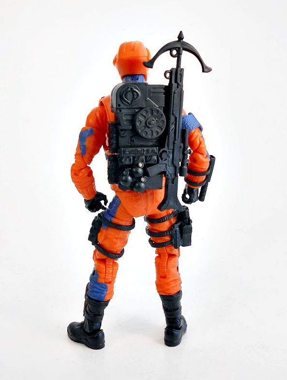 The black backpack pegs into the back of the figure and is a superb nod back to the original figure’s backpack. Like the Viper’s fatigues, there’s a crazy amount of detail in the sculpt. In addition to the Cobra emblem at the top, there are magazines sculpted into the sides, a cluster of grenades down at the bottom, more pouches, and what looks like a landmine in the center. The grapple gun, which I believe was sculpted into the original figure’s backpack, is even removable here.