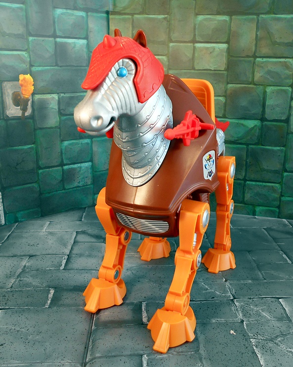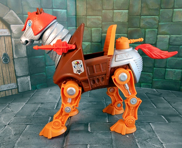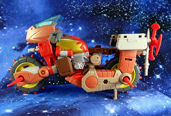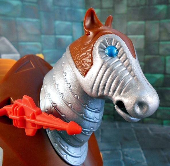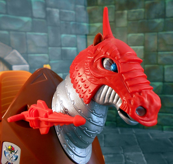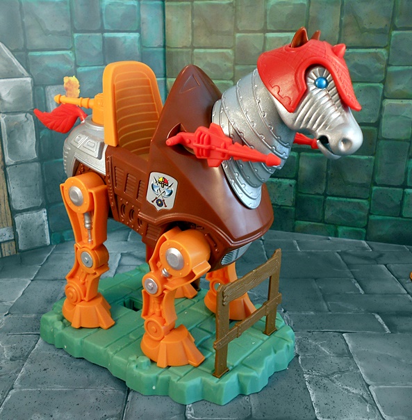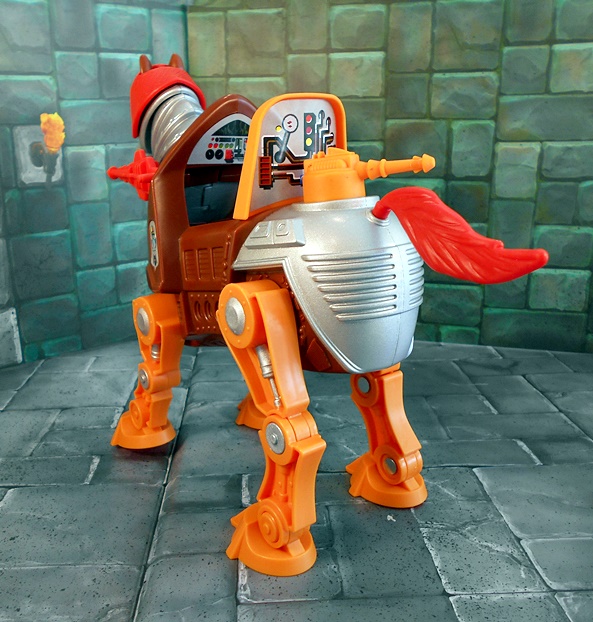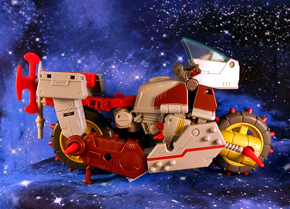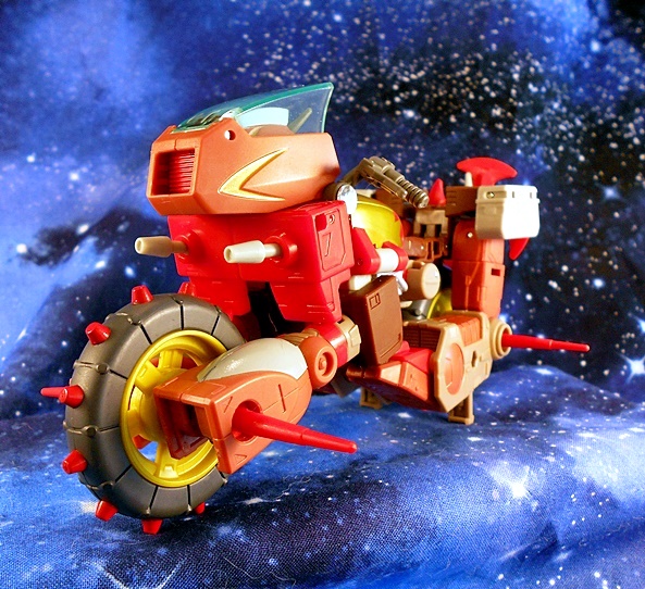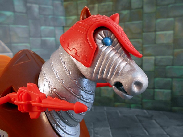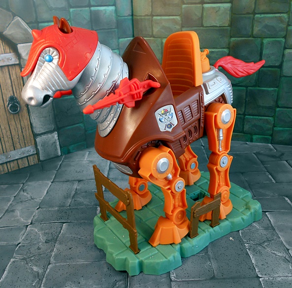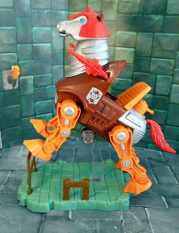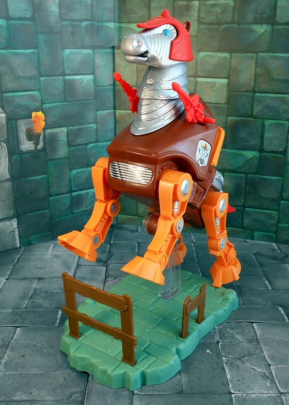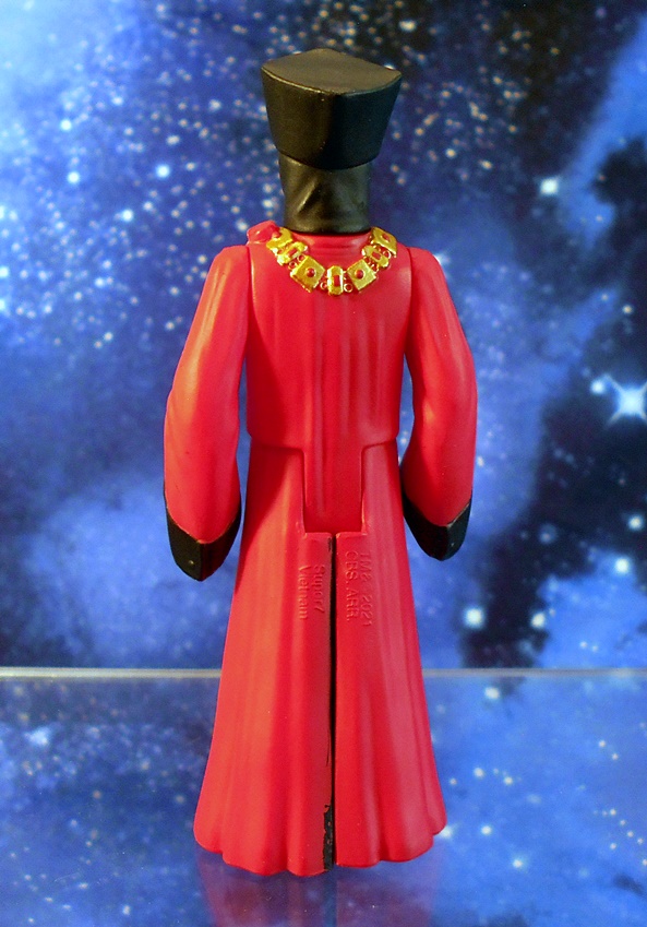 flip down to the undercarriage, and I found this area particularly interesting, since we didn’t often get a good look at it in the series. Here the station’s main fusion reactor hangs down, suspended by the power transfer conduit. We get some nice red paint surrounding this area, along with a central nub jutting out from the middle. The stand here is very well done, and consists of the same combination of translucent plastic stand and black diecast base, which cradles the station underneath, offering sturdy support without interfering with the look of the model.