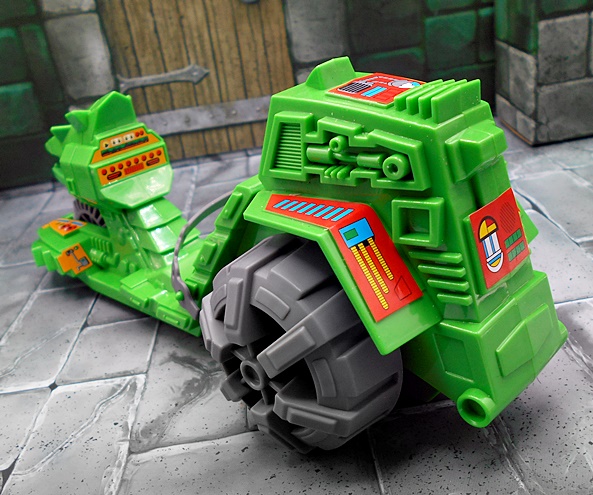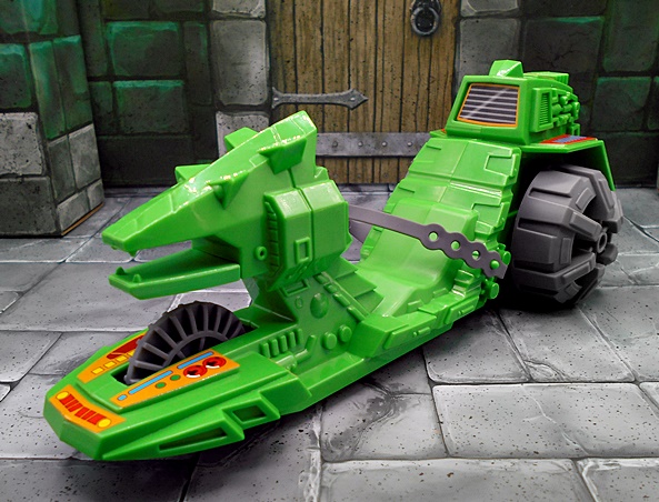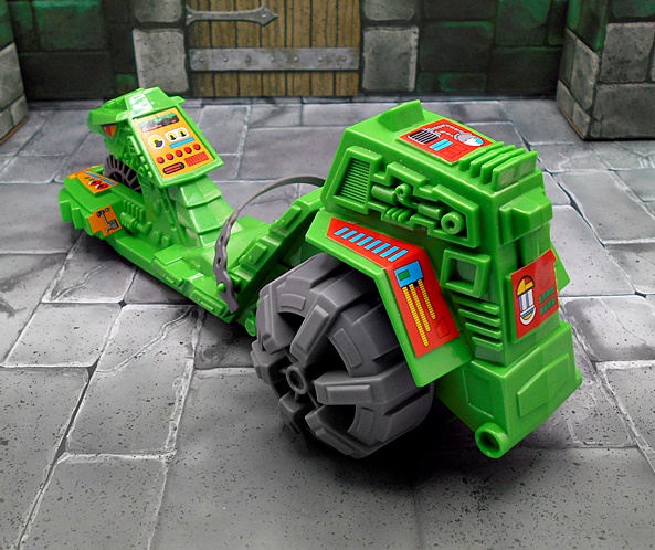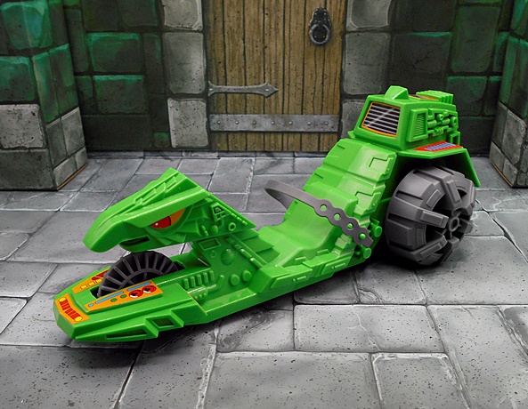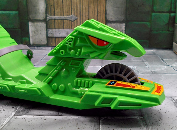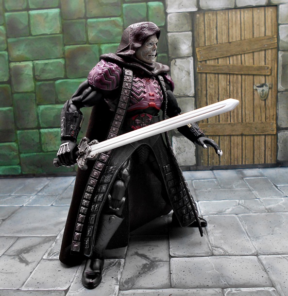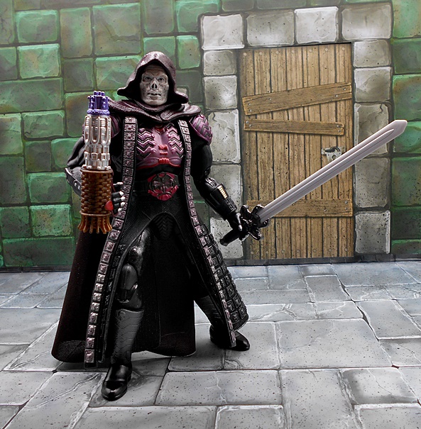 The sword is quite impressive! There are hints to the design that make it a little similar to He-Man’s, but I can’t remember whether there was supposed to be any connection between the two swords in the movie. At least I don’t remember there being any. The hilt is beautifully sculpted, and the blade is broad and straight. Alas, it is left as unpainted gray plastic, and I wish Mattel had given us some silver paint on the blade. Unlike He-Man, there is nowhere for Skeletor to wear the sword, which is a bummer, but probably more a fault of the movie costume design than the figure.