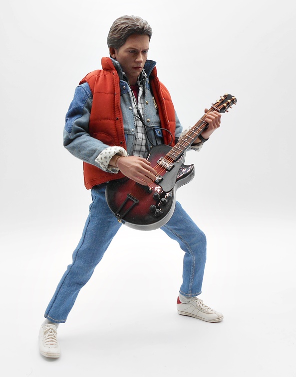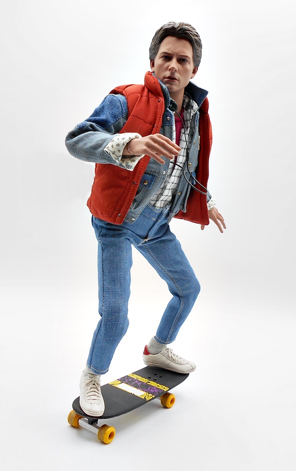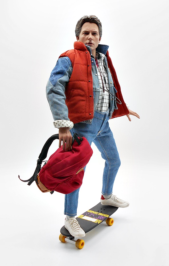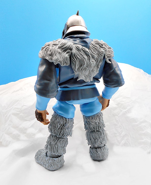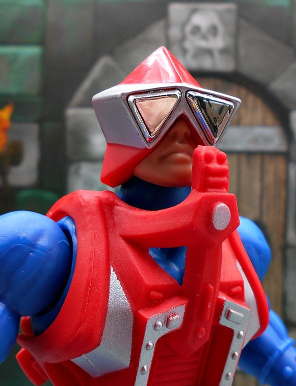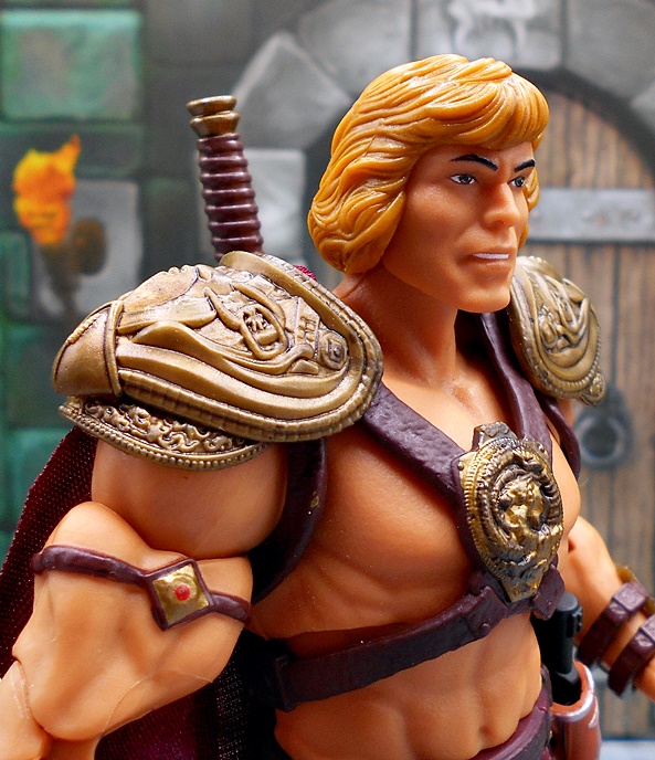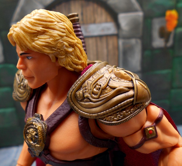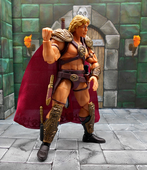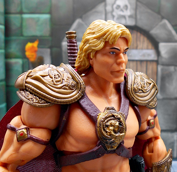 As much as I loved He-Man’s redesign for this film, I think I dig Skeletor’s even more! It’s an even bigger departure from the classic design, but it looked great on the big screen and it looks pretty damn good as an action figure too. There’s a lot of layering here, with the partial skirt being cast in plastic, as well as the two strips of plates that run from his shoulders to his ankles. You get some beautifully sculpted armor on his chest and shoulders, which I can only describe as having an organic techno-skeleton vibe to them. The metallic purple paint used for these pieces is really snappy too! The lower skirt also has a series of square plates sculpted onto it, resembling brigandine style armor. Skeletor has some really cool bracers, and I dig the silver paint on the backs of his gauntlets that reminds me of a circuit pattern. It’s a bit more pronounced here than on the actual costume, but that’s fine. The cape is light cloth with a triangular plastic piece jutting down, probably intended to be leather, and punctuated with a single bronze painted medallion. The layering and textures of the costume combined with the ornate sculpting makes for an awesome looking figure.