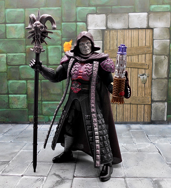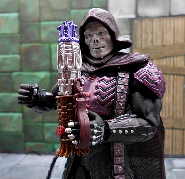 And finally, you get the Cosmic Key! Mattel gave us this accessory with the Classics version of Gwildor. This time around, the key is in its dormant state with the tuning forks closed. The device is painted in brown, silver, and purple and it looks OK, but I feel like the detail could have been a bit sharper. There’s a plastic loop on the side, so the Key can be held by passing Skeletor’s flat hand through it.