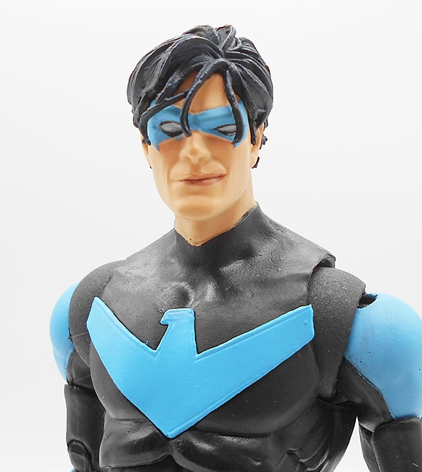 The head sculpt is pretty good. These are meant to be the Not-So-Teen-Anymore Titans, so Dick has an older and kind of strung-out look. He has a great little smirk and his eyes are sculpted and painted to give his right eye a bit of a Deadpool-style pop. There’s a tiny bit of slop to the paint around the domino mask, but you have to get in really close to see it. Some strands of sculpted hair hang down over his eyes, adding a nice extra dimension to his coif.