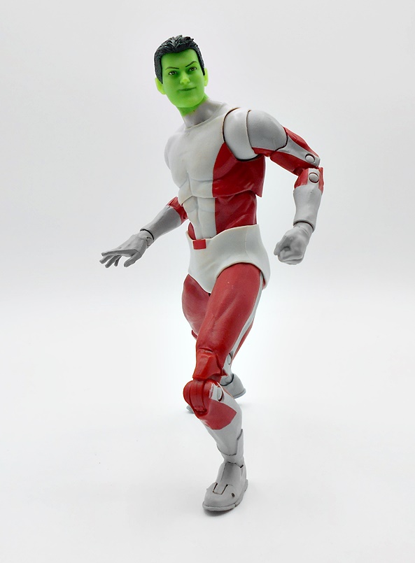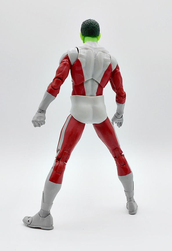 This more reasonably sized Beast Boy sports a pretty simple outfit that gets by with paint paint and no unique sculpting that I can see. And that’s fine, because it’s meant to be a simpleoutfit. The slightly off-white and crimson pairs really well together and the paint lines here are pretty sharp and clean. The rubber diapers don’t usually bother me much in this line, but here it seems a bit more prominent than usual. Still, it’s not an obstacle to me enjoying the figure. I am happy to see that the pins are all painted correctly.