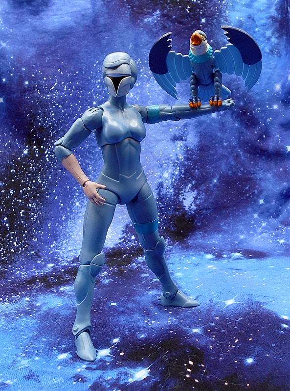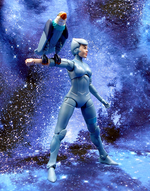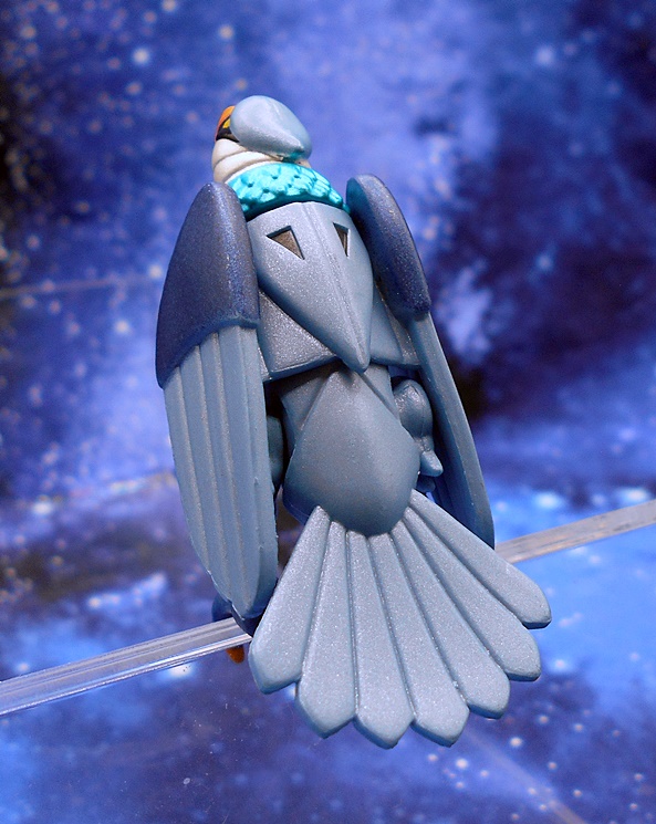Oddly enough, Steelheart does not come with a lot of accessories. Her brother came with a couple of guns, Bluegrass came with his guitar, but apart from her bird buddy, Steelheart only comes with the blue laser beam effect parts that we saw with the other Silverhawks. These can be plugged into the gun ports on the shoulders, and I think they look cool.
