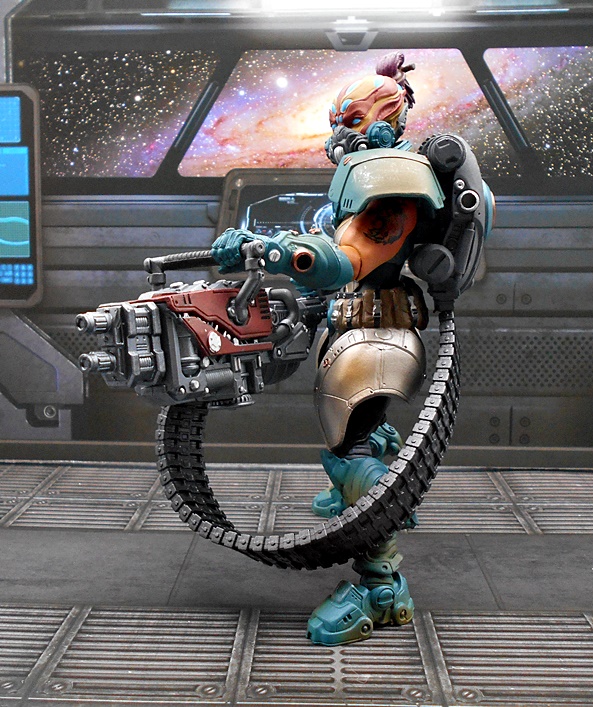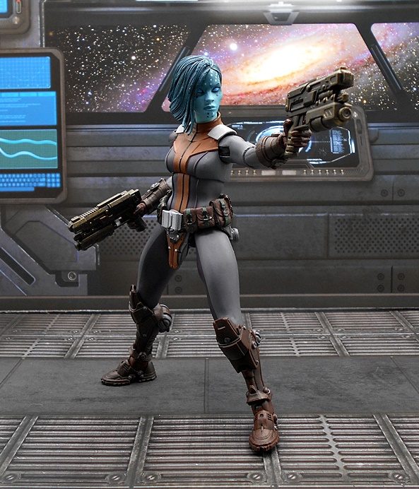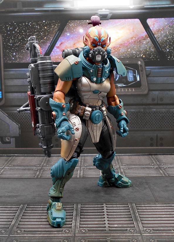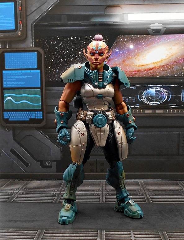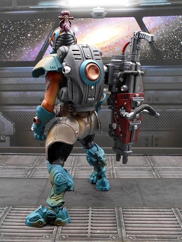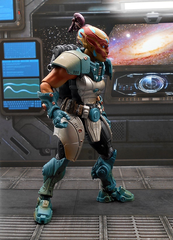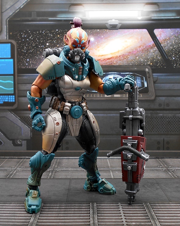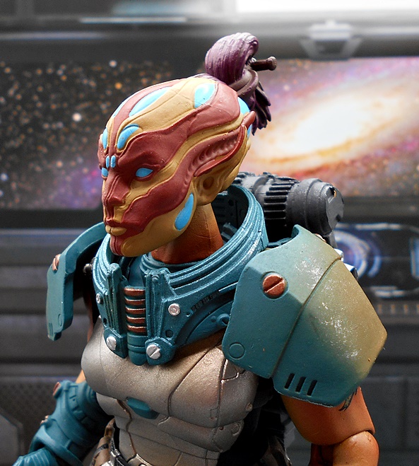 The portrait could have made or broke this whole shebang but boy did they nail it here. Jem is absolutely beautiful and the paintwork for her eyes and makeup is all razor sharp. Her lovely face is framed by that beautiful big cotton-candy colored hair. Boy did I love me some 80’s rock ladies with big hair. Must have been what fueled all those teenage fantasies I had about the Wilson Sisters. These Dreams, indeed. Anyway… Where was I? Oh yeah… if you look close you can see her earrings under all that hair. It’s Showtime, Synergy!