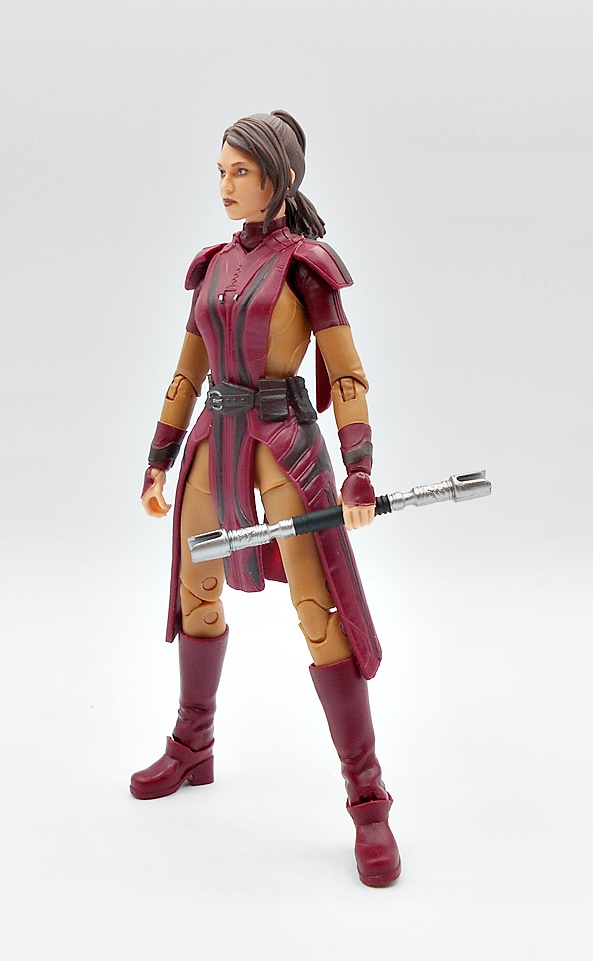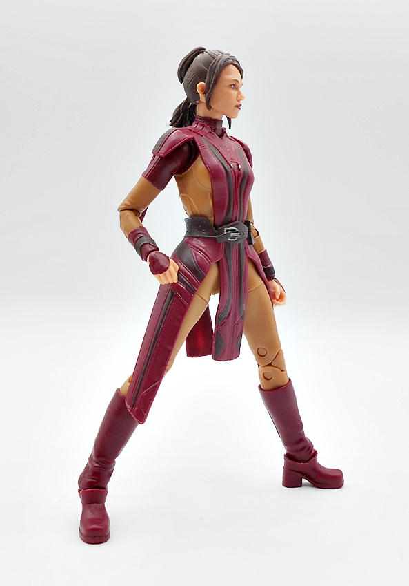 The costume colors and design follow her animated look, and I’ll do a comparison with the original Hasbro doll at the end. This means less sparkle and more pink and red. Her short dress is pink with the belt-sash thing being red and her high heeled shoes also pink. The skin tone is nice and even. The colors just pop so beautifully here and all the paintwork is excellent. Even her fingernails are painted pink and you get some lovely metallic gloss on the microphone.