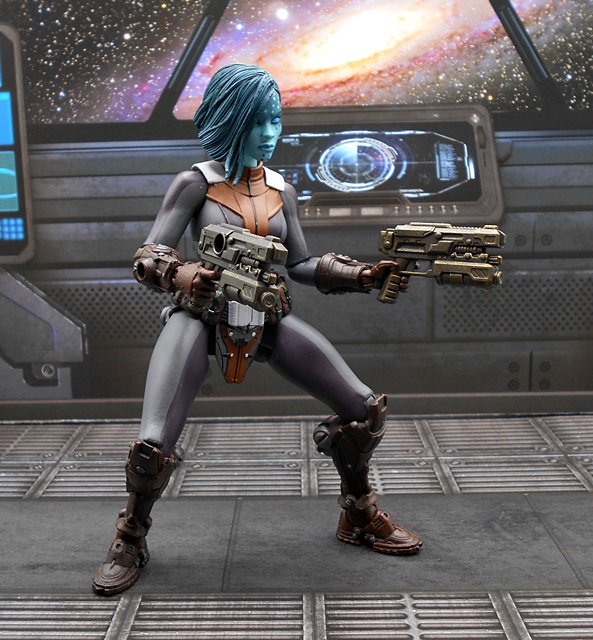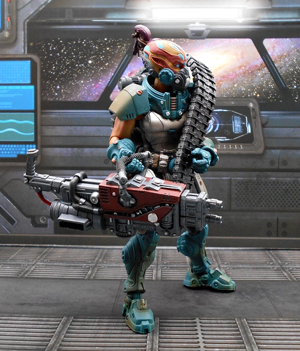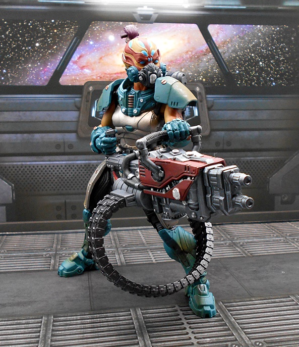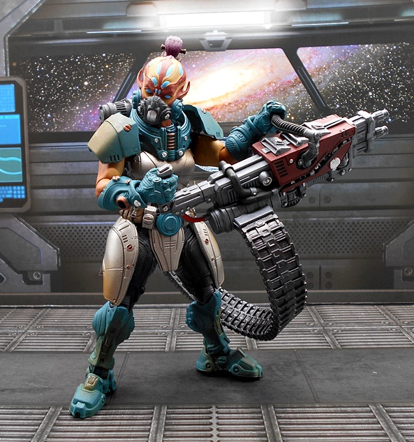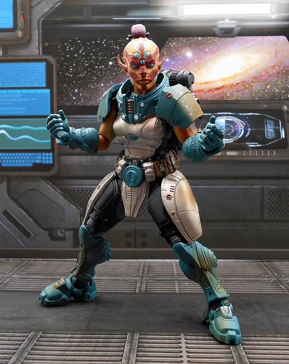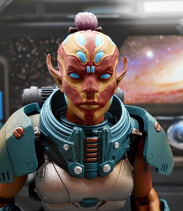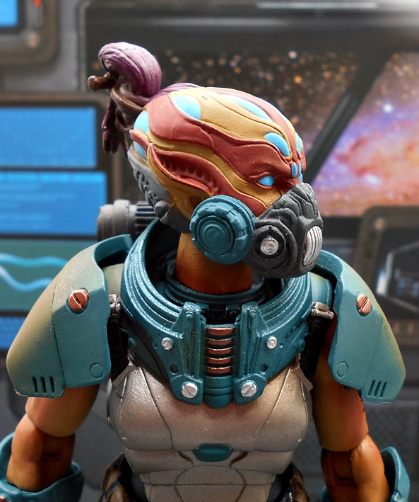 The portrait could have made or broke this whole shebang but boy did they nail it here. Jem is absolutely beautiful and the paintwork for her eyes and makeup is all razor sharp. Her lovely face is framed by that beautiful big cotton-candy colored hair. Boy did I love me some 80’s rock ladies with big hair. Must have been what fueled all those teenage fantasies I had about the Wilson Sisters. These Dreams, indeed. Anyway… Where was I? Oh yeah… if you look close you can see her earrings under all that hair. It’s Showtime, Synergy!