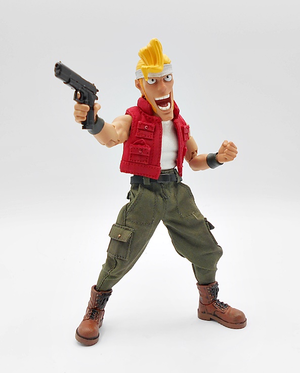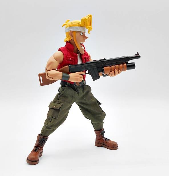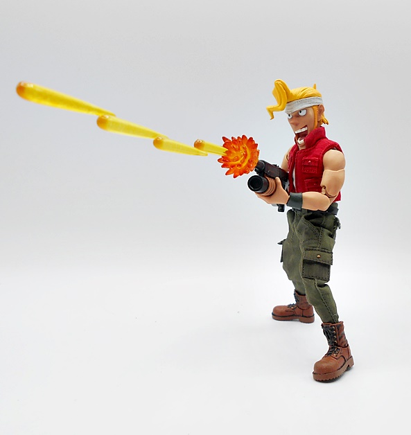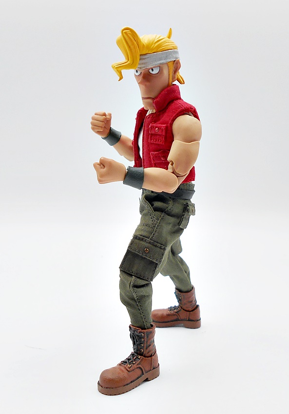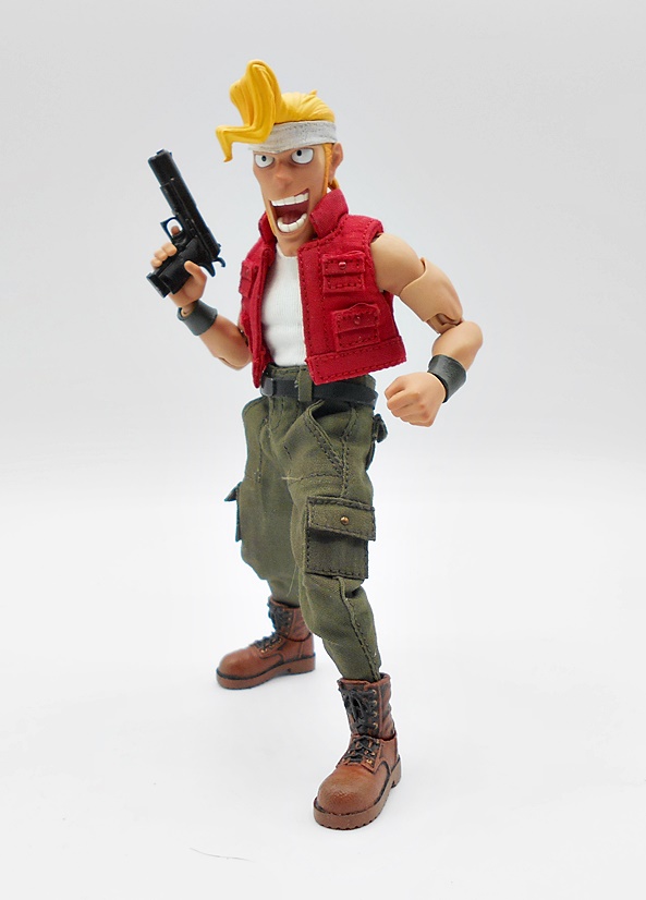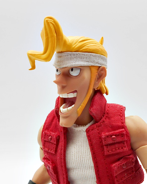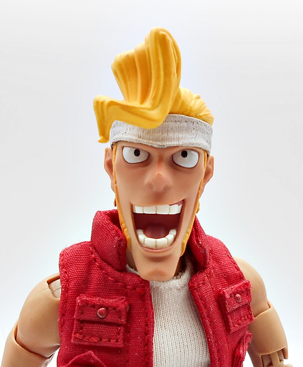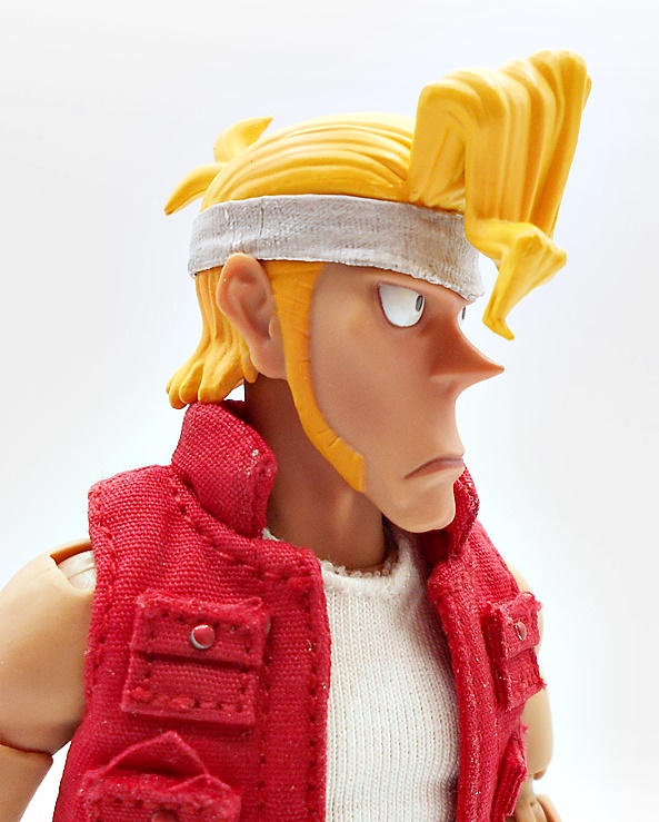 You get two head sculpts, with the first being a somewhat neutral expression. I think the sculptors did a great job translating the rather unique 2D art stylings of the game to 3D plastic. Marco has a determined, downturned mouth, a pointy nose and eyes that look like they have seen some serious shit. And believe me… they have! The sideburns look great, he’s got a dirty white headband, and that ridiculous lock of hair that zig-zags its way over his forehead. There’s some nice shading on the skin and the yellow hair is bright and snappy.