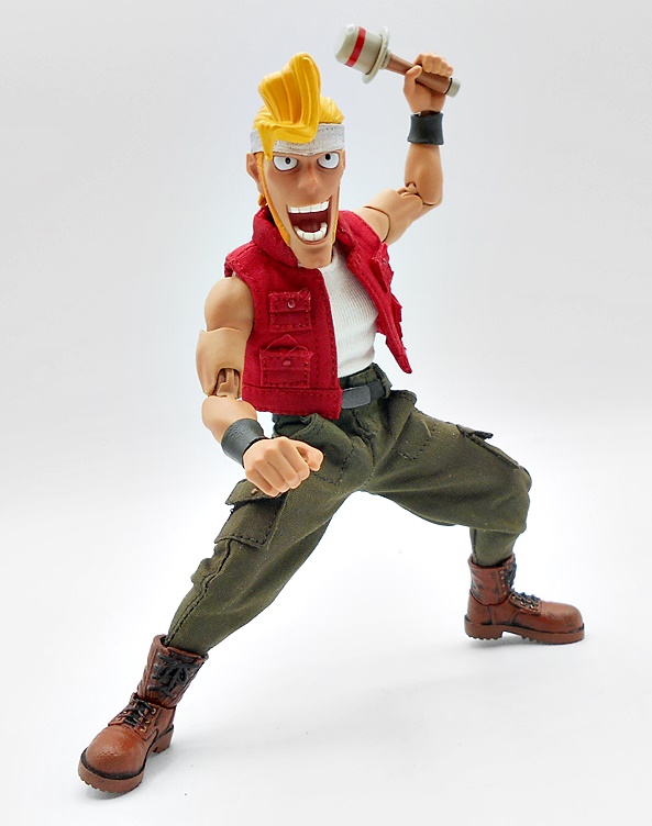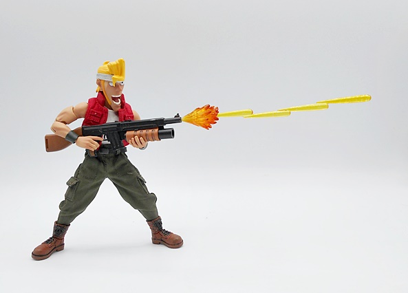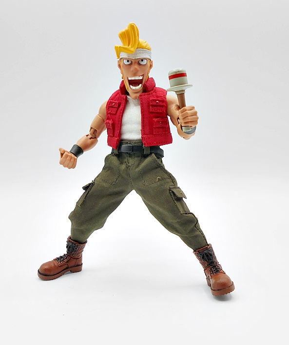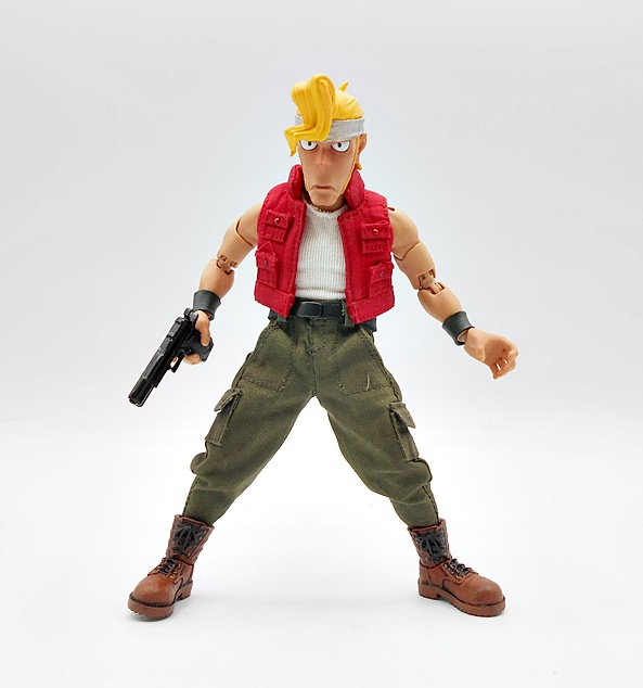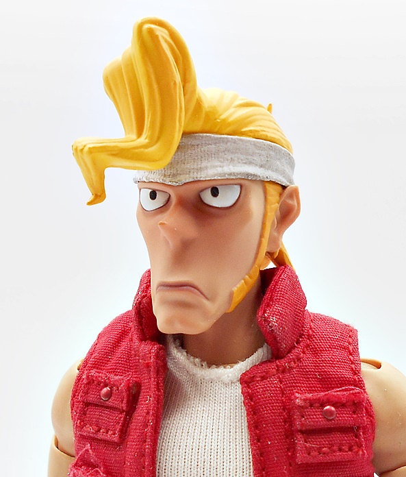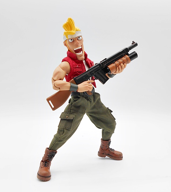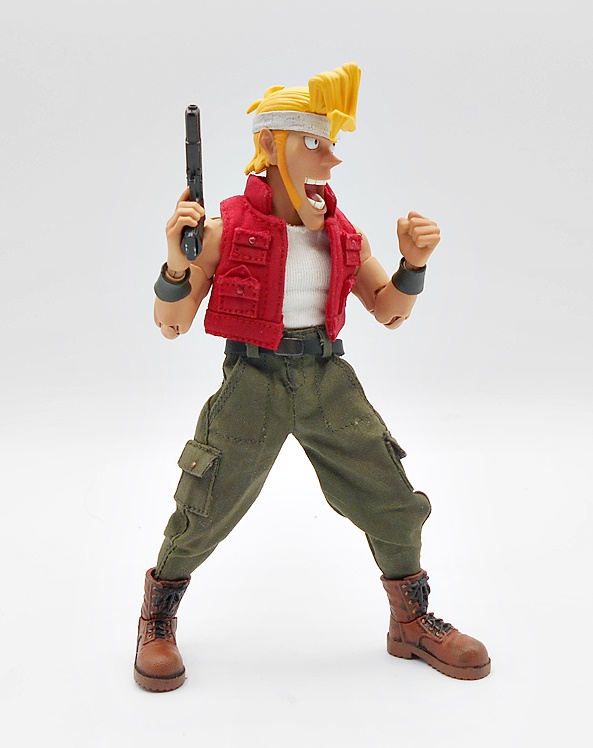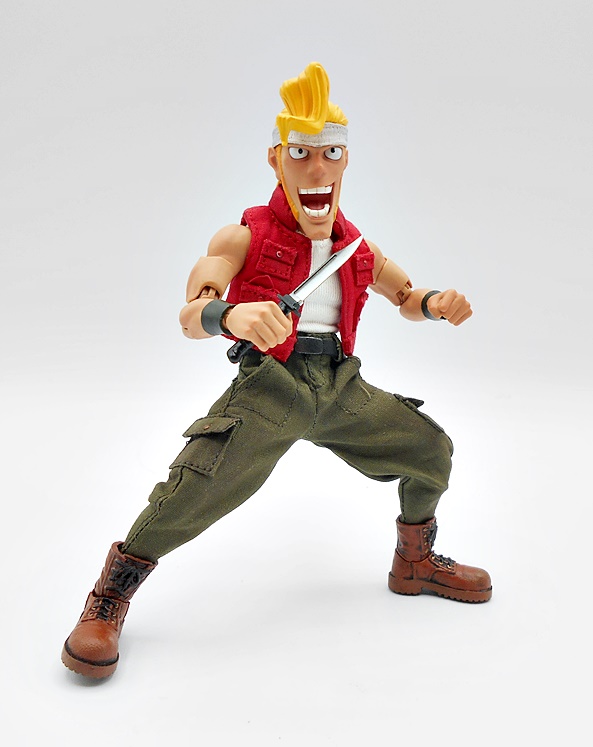 You get two head sculpts, with the first being a somewhat neutral expression. I think the sculptors did a great job translating the rather unique 2D art stylings of the game to 3D plastic. Marco has a determined, downturned mouth, a pointy nose and eyes that look like they have seen some serious shit. And believe me… they have! The sideburns look great, he’s got a dirty white headband, and that ridiculous lock of hair that zig-zags its way over his forehead. There’s some nice shading on the skin and the yellow hair is bright and snappy.