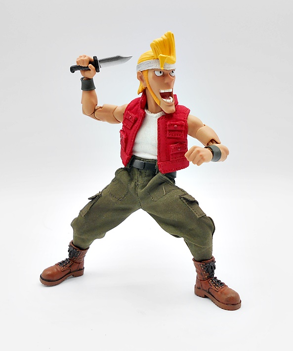 The final weapon in Marco’s arsenal is a combat knife, which is his default attack when he gets close enough to an enemy to shed blood. Or white sweat if you’re playing the US version. Once again, this is a beautifully detailed piece with a painted silver blade and a serrated back edge.