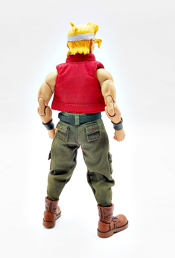 And, hot damn! This guy looks amazing! The super articulated body reminds me of the bodies that Storm Collectibles are putting out, and that is very much intended as a compliment. These joints are easy to work with, move fluidly, and include double hinges in the elbows and knees. The figure is dressed in a pair of baggy green trouser fatigues, a white sleeveless t-shirt and an orange vest with double pockets on each side. He’s got a belt, wrist bracers, and some absolutely phenomenal sculpted boots. Normally I would not have believed softgoods were a smart move for figures in this scale and license, but boy does it work beautifully here. The tailoring is pretty clean, but there are a few loose threads I may trim. I like that the pants are baggy so as not to inhibit his articulation.