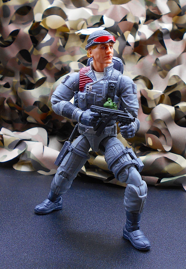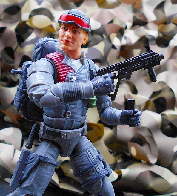 His regular shooter is, eh… well one of these weirdo modern European looking sub machine guns. The original figure came with an Uzi and I would have much preferred that, but I guess this is fine. I’m not up on these modern designs, but it’s a nice sculpt featuring a well-defined rail on the top, a foregrip, and a detachable magazine. God, how I love that Hasbro has made detachable mags a normal thing for this line and the gun sculpts have been absolutely fantastic, even if I do prefer the more traditional designs.