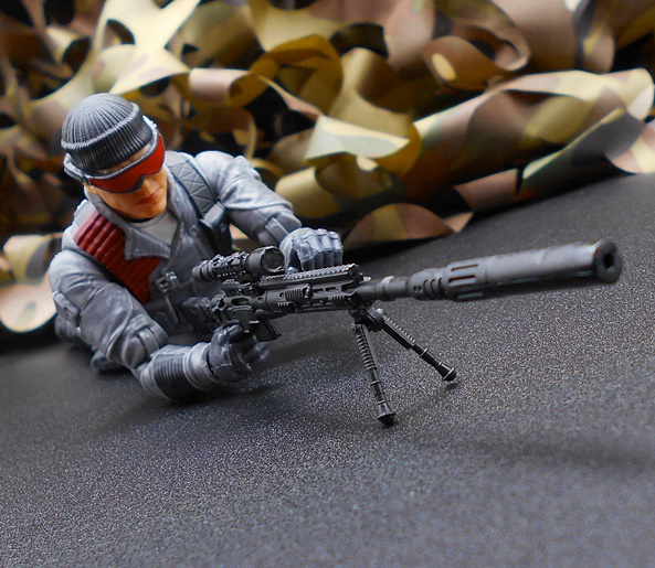 Open the case and you have compartments inside to hold the sniper rifle, scope, suppressor, and bipod. This is so damn cool and so incredibly well done! It’s also exactly the sort of thing that I hoped we would see with the increase in scale. Everything fits into the case perfectly and can be attached to the rifle once Low-Light has scouted his perch.