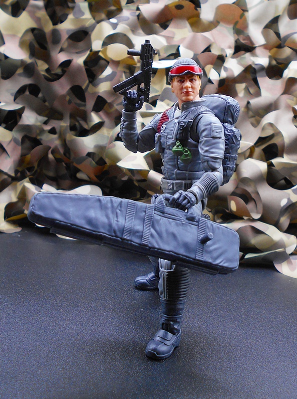 And then there’s this beauty! You get a fully functional case for Low-Light’s sniper rifle. The sculpt on this is beautiful from the nylon straps to the seams to the zipper running along the edge where it opens. It has a carry handle and a peg to attach to his back. There’s also a socket on it so you can peg the backpack on top of it, but I think that looks kind of silly, so it’s an “either, or” situation for me.