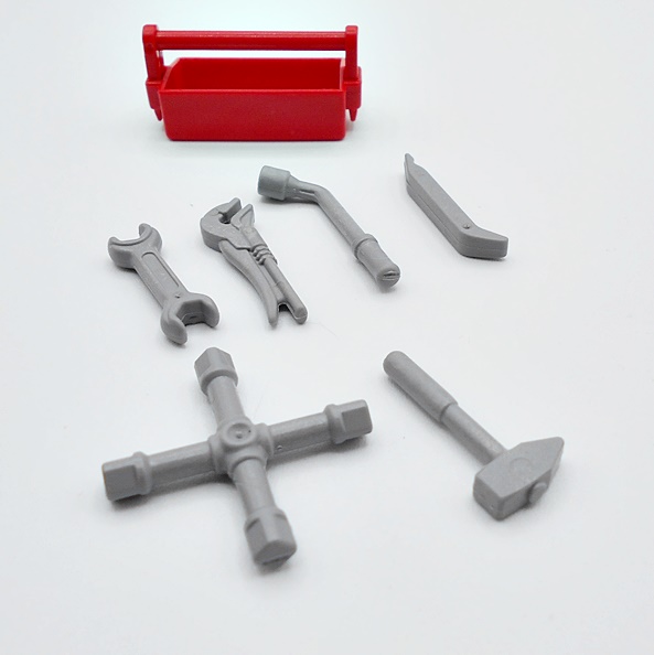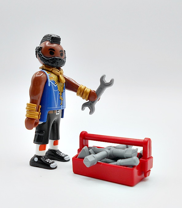 Croc’s more normal accessories consist of a fighting knife and a pistol, each of which can be stored on his person in the sheath and holster. The pig-sticker is mostly bare gray plastic, but it does have some green paint on the wrapped handle, giving it a bit of personality.