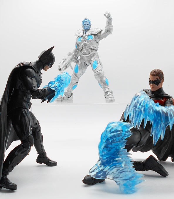 You get the same two laser effect pieces that came with the Steel Twins, and these plug into the shoulder ports. There’s been a lot of back and forth over whether the starbursts are supposed to represent the beam firing from the shoulders or hitting a target. Either one works, but I’m pretty sure I remember the official solicitation shots showing the starbursts as impact effects.