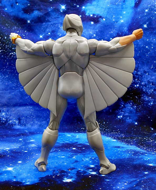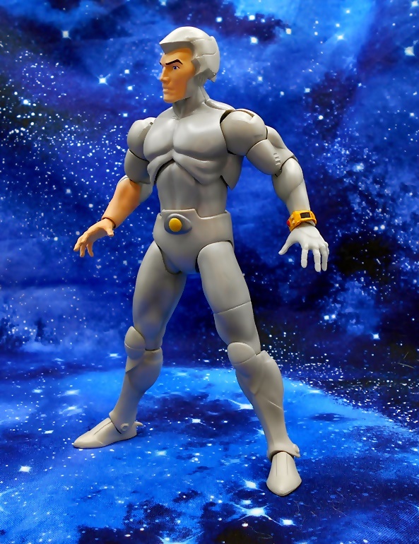 Quicksilver continues the use of a sort of satin to matte paint finish to convey the cartoon look, as opposed to the vac-metal finish of the original Kenner figures. It’s far from glossy, but not quite flat either. To me, it does a decent job at presenting the animated look, but to me the rest of the team’s blue came across as more pleasing to the eye than Quicksilver’s gray. I think the blue just gave them more to work with. With that having been said, you get the same minimalist detail for the animated style with some soft muscle definition, a few panel lines, and the belt buckle-type fixture center on his waist. The right arm is flesh tone, making up the partly real aspect of the tagline, while the left arm is completely gray. I dig it! Quicksilver has his communication bracelet, which is painted up in yellow with some additional paint apps to the controls. This is a separate piece, so it can be swapped out to the winged arms as well.