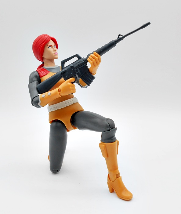 And for when Scarlett needs a little more firepower, she comes with an M16, and I’m not sure why because I don’t remember this being a thing in the cartoon and it definitely wasn’t included with the RAH figure. It is a pretty nice toon-ified version of the iconic infantry weapon, although the barrel is very prone to bending and I had to heat it up as well to get it even close to straight. And yes, it is a little irksome that Hasbro can deliver most of the weapons in their slightly smaller scale Classified line at half the price and have them come out straight most of the time, not to mention also have detachable magazines and occasional blast effect parts. To be honest, I will likely never display Scarlett with this weapon, and I would have much rather just gotten another one of the XMLR-3A Laser Rifles that most of the JOEs used in the cartoon and that came with Snake Eyes, Duke, and Flint.