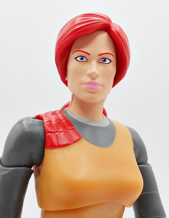 You get three different head sculpts, and while there isn’t a huge difference between them, I think the one that came on the figure is the best. She has a pretty determined look with downturned eyebrows and mouth. This is probably the face she pulls when she catches Duke making out with Selina or other random Cobra slavegirls that he rescues. The eyes are printed very nicely, and while her hot pink lipstick doesn’t quite fill out the mouth sculpt, I still think it looks pretty good. The fiery red hair and ponytail are both pitch perfect, But now is about as good a time as any to point out the ugly seam running up the sides of her neck. Yeah, that’s a shame.