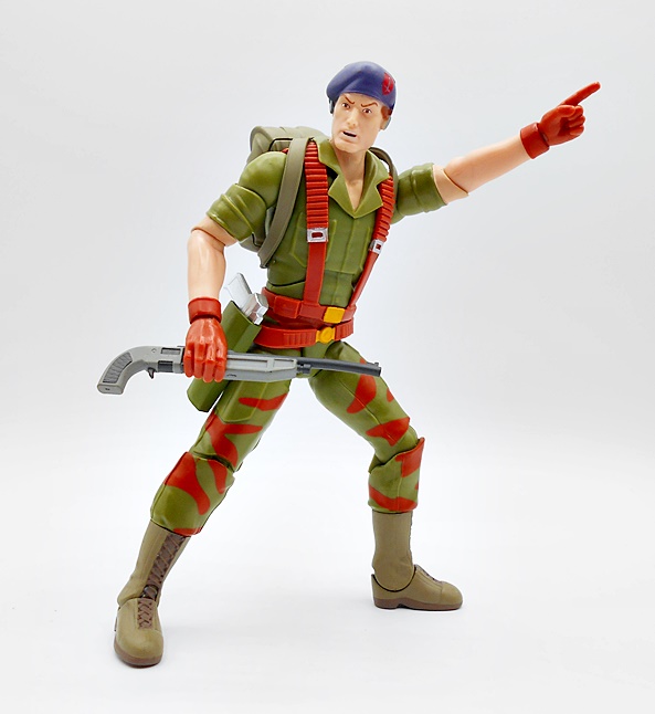 And Flint also comes with a combat shotgun similar to the one included with the original figure. This strikes a nice balance between realistic detail and cartoon simplicity. I like the raised texture on the pistol-style grip and that the ejection port is sculpted in. Mine has a bit of a curve to the barrel, which I’ll have to address with some heat. It’s a common problem with Super7’s JOE weapons, but I’ve found that it’s usually an easy fix. Still, not something I’m happy to have to do with a $55 figure.