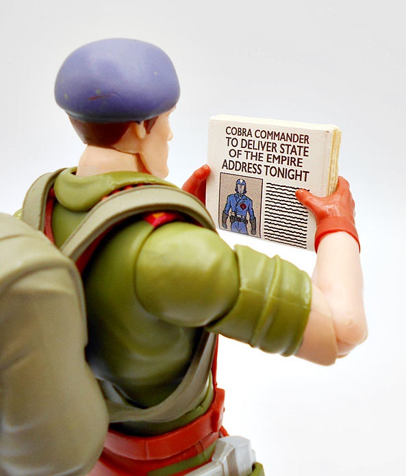The final accessory is the newspaper from the episode, Worlds Without End, Part 1. This one has a group of JOEs stranded in an alternate reality where Cobra has defeated GI JOE and taken over the world. It’s a very memorable two-parter and I’d rank it pretty high on my list in terms of how well it’s written, so this is a really appreciated accessory. OK, time for a commercial break, while I refresh my coffee…