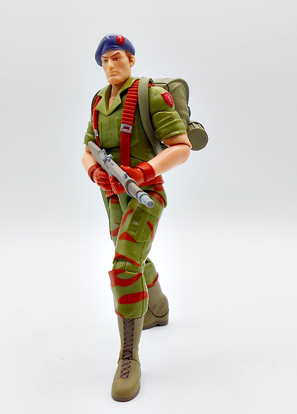 You get three heads to choose from: One with the beret sculpted as part of the head, one with a removable beret, and one with a communications headset. But before we get into those, let’s discuss the big thing here. The first wave gave the only unmasked figure, Duke, a painted face, but here we have faces and arms using a bare, flesh-colored plastic. I preferred the painted faces, but I don’t think I mind these as much as a lot of collectors. What I do mind is changing horses in mid stream, and then changing back again. It’s true that there’s less chance for paint issues here, but under certain lights the plastic can look waxy, giving the characters a sweaty look. With that having been said, I really like both the stock head with the permanent beret and the one where it’s removable. The first is a more serious expression, the second offers a bit of a smile, and boy they certainly nailed the look of his cleft chin! And honestly, the removable beret fits the head so well, they could have just sculpted both heads without it and I still would have been happy.