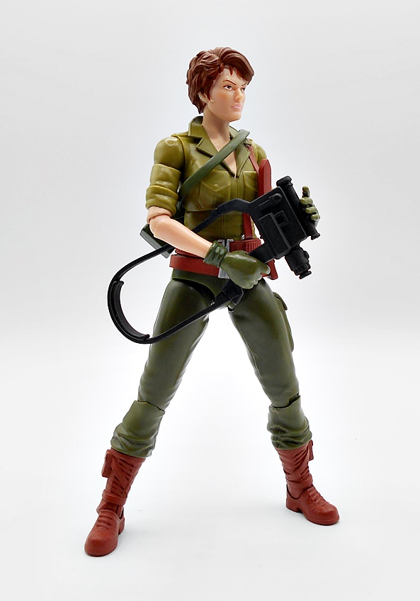As with Flint, you get three head sculpts, and all three use the same unpainted flesh tone plastic: Two with different expressions and one with a radio headset. The first two heads are different, but it’s really hard to differentiate the expressions they were going for. I think the second is mildly more severe, but they’re still pretty close. I think they’re both decent sculpts, but the paint around her hairline is pretty poor, with some of the sculpted hair edges left unpainted. This is a huge example of why hair should be sculpted separately from the rest of the head and it’s something that Hasbro does regularly with their much cheaper Classified JOEs. Sure, it’s a lot more noticeable when you punch in close with the camera, but still unacceptable with collector grade figures at this price range, when other companies are doing it better for less at mass retail.
