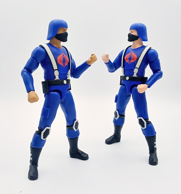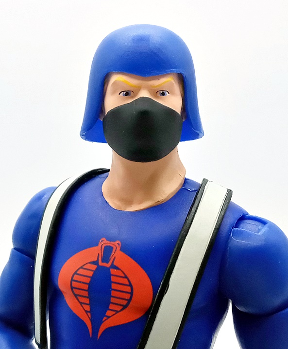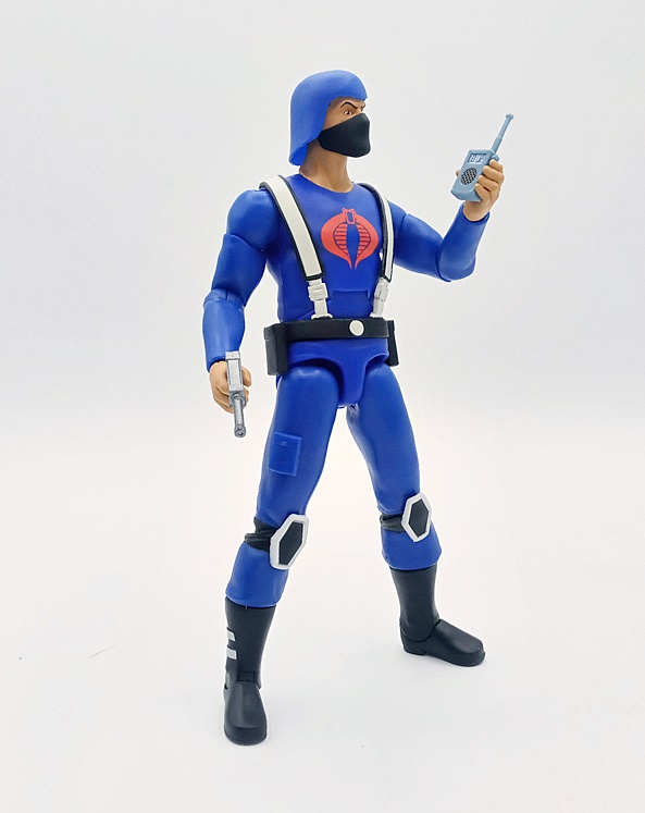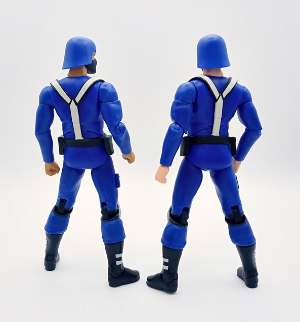 The new head is excellent, and a perfect update to the G1 toy. The rounded dome and angled red eyes give him a sinister visage. There’s some orange paint on his vocalizer box, as well as the twin antenna that sweep down to form open pipes on the sides of his cheeks.