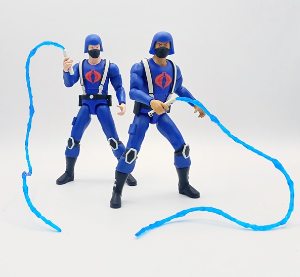 It’s Malleus Minotaurus, and he feels like the design team was sitting around saying, “What else we got to throw in this box to get it to the right price point?” He’s a re-color of the Battle Master Smashdown, and that’s being generous because he’s just gray plastic with a little blue for his eyes and forehead emblem. As his name suggests, his robot mode is minotaur-themed with a bull-like head. He transforms into a hammer, hence the malleus part of his name. Hey, at least Hasbro is teaching kids The Latin! As a kid, I probably would have loved this concept, but as an adult collector, I don’t have much use for him and the idea of a robot transforming into something that robots hit other robots with is just a bit too goofy for me. He does come with two semi-translucent blue energy effect pieces to attach to the front and back of the hammer’s head.