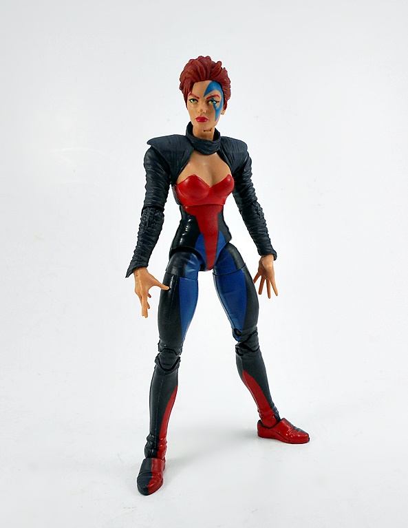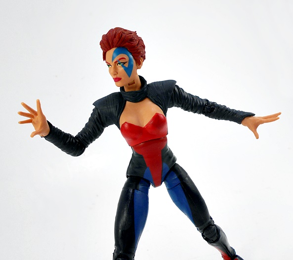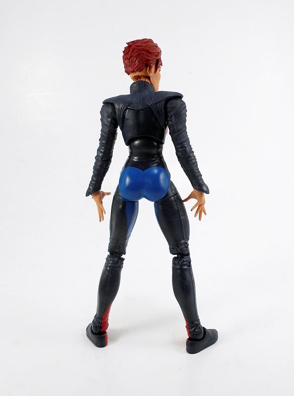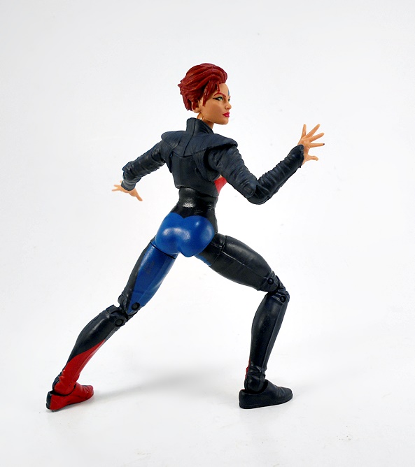 Shadowcat’s articulation is standard stuff for the Legends ladies. The legs feature ball joints in the hips, swivels in the thighs and lower legs, double-hinged knees, and hinges with lateral rockers in the ankles. The arms have rotating hinges in the shoulders and elbows, with hinged pegs in the wrists. There’s no waist swivel, instead you get a ball joint under the chest, and a hinged ball joint in the neck. Kitty comes with two pairs of hands: One pair of fists, one right hand with splayed fingers, and one left accessory holding hand.