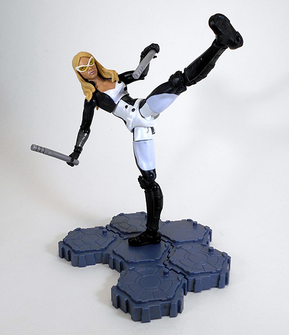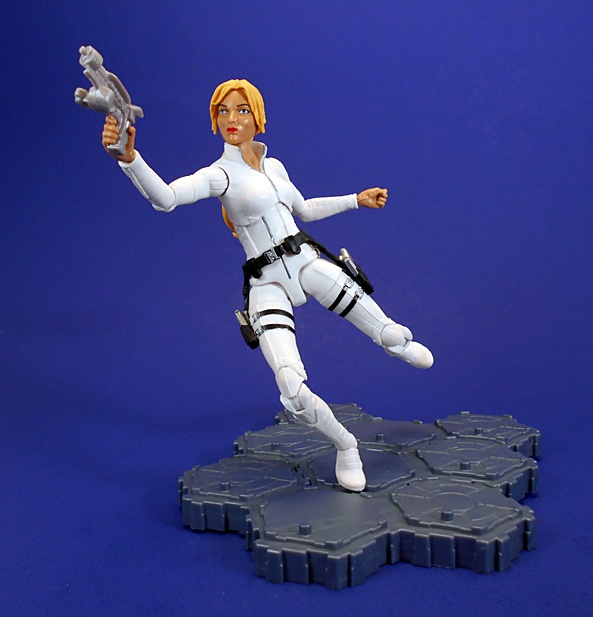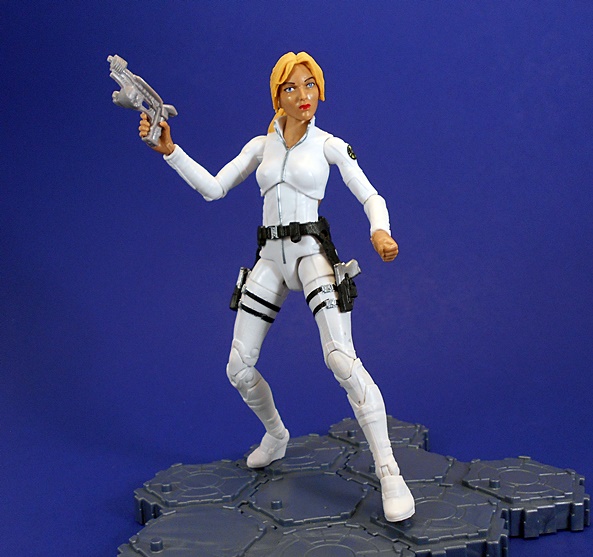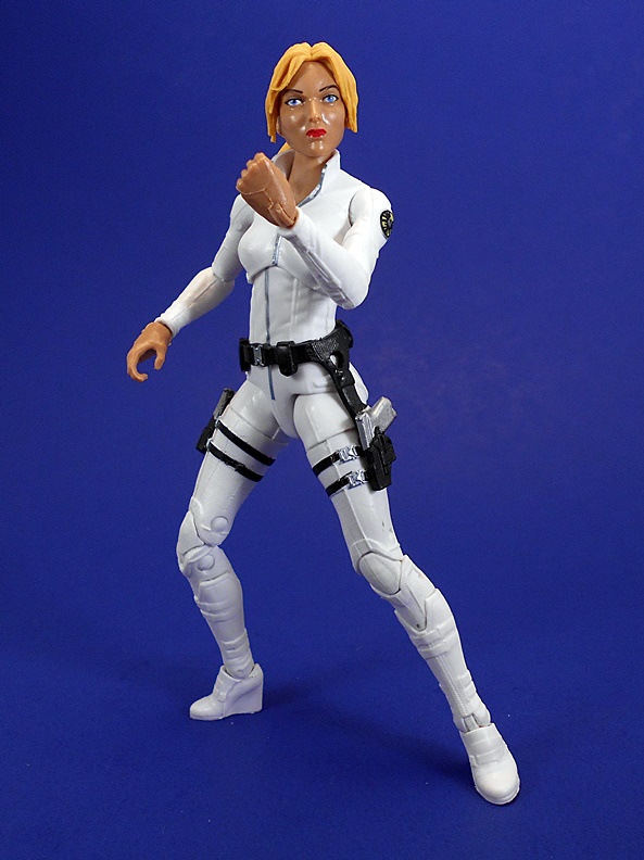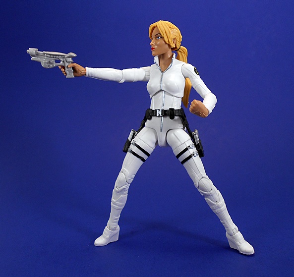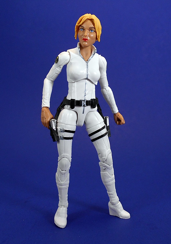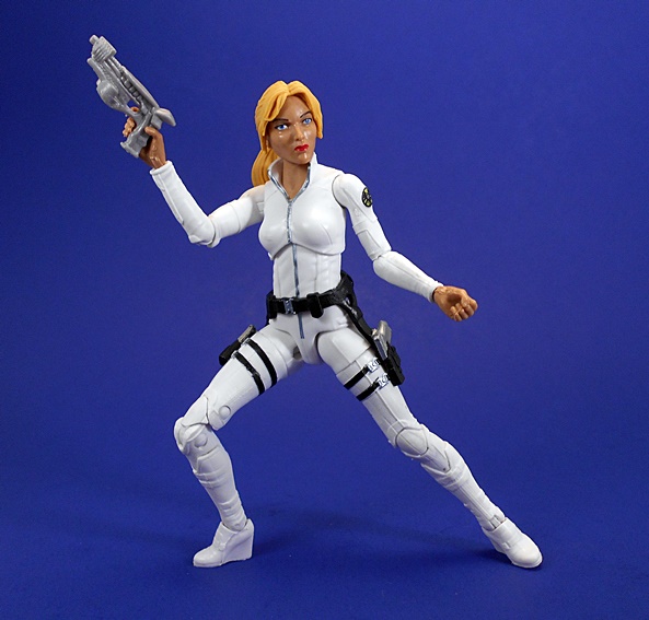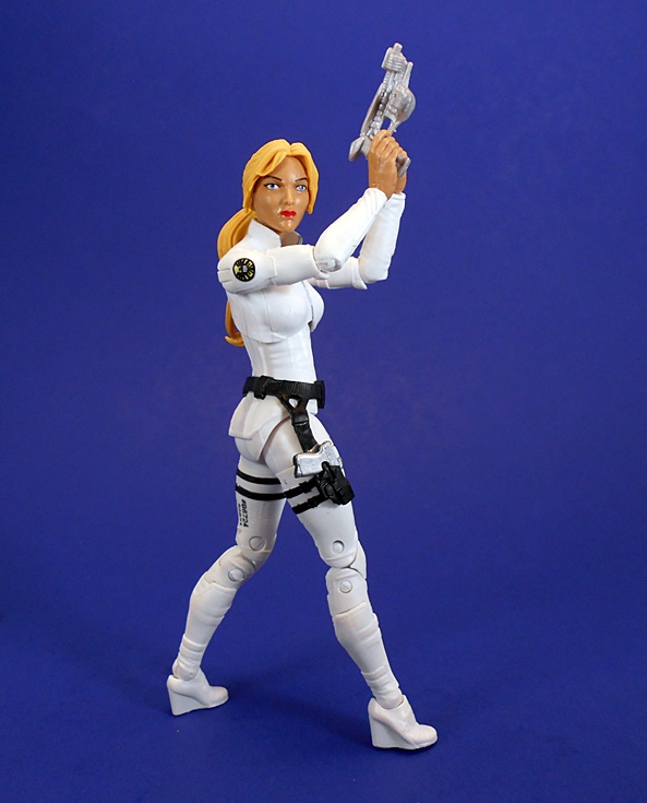 Maria Hill! And I think the transformation works pretty well. Sliding off the gauntlet sleeves reveal white painted gauntlets underneath, and you get a choice of splayed figure hands or gun holding hands. The gun is a compact automatic pistol and serviceable but not really special. I do think it would have been cool if Hasbro included an attachable holster or something, because Agent Hill doesn’t have anywhere to put her shooter when she’s not holding it.