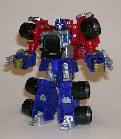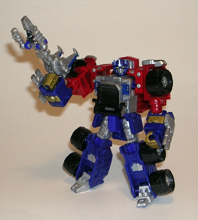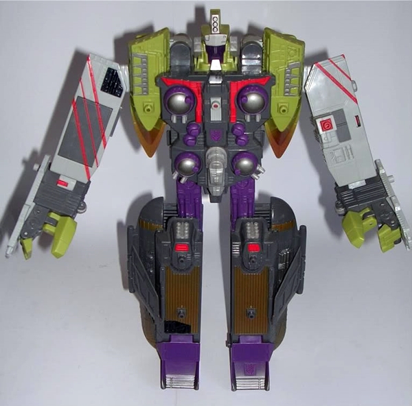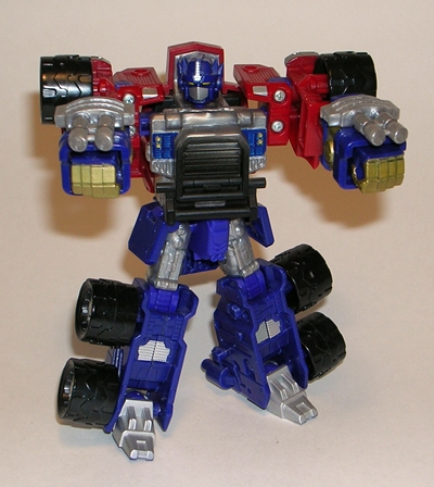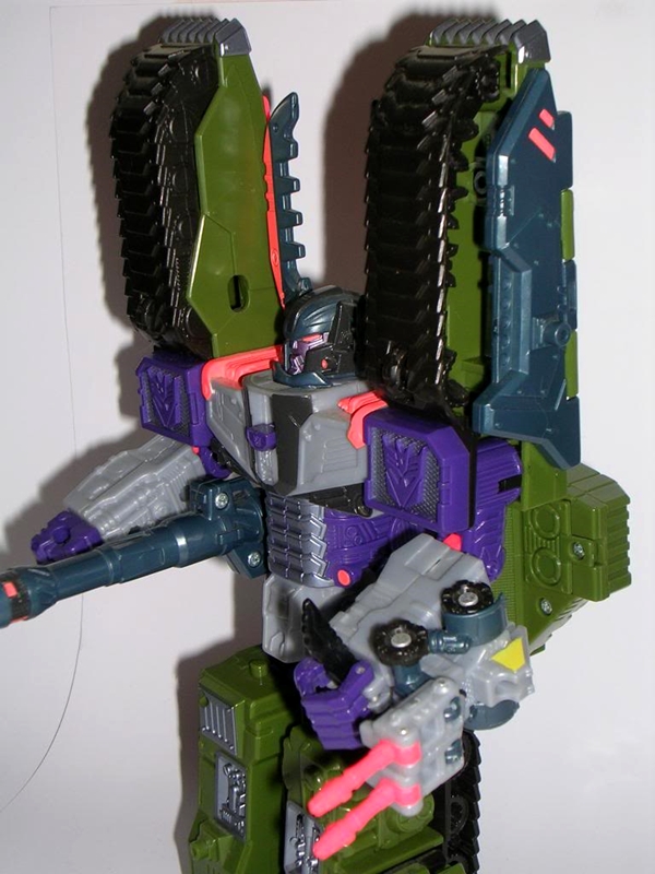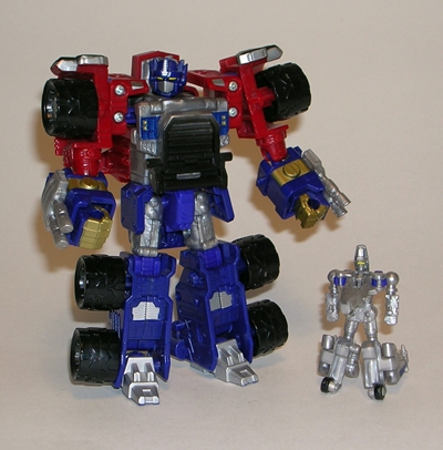 There’s his combined mode. All in all, not too shabby for what it is. Thanks to a generous helping of ball joints, the combined mode is actually kind of fun to play around with. Hasbro has done at least one Minicon combiner since, but the fact that this guy is just two robots makes him more impressive to me. Some paint hits on that head sculpt wouldn’t have gone amiss.