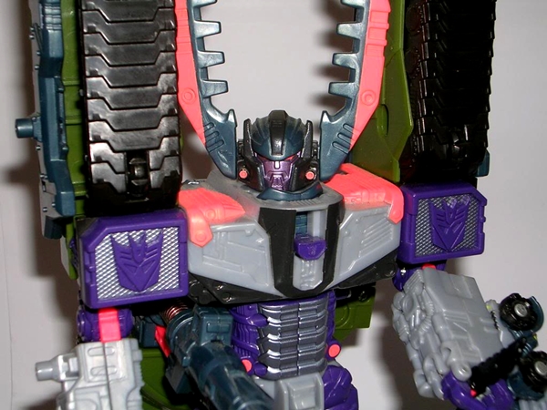 Sideways’ motorcycle mode is a bit chunky, but designing transforming motorcycles can be tricky. I think the only figure that ever got it really right was Cy-kill and he was a f’cking Go-Bot! Ok, G1 Wreckgar wasn’t that bad either. My point is, if you try to make the alt mode too perfect, you’re going to come away with a monstrosity like Lugnutz from the Cybertron line. You can go see for yourself, but don’t worry… I’ll get to him eventually. Anyway, I do like Sideways’ alt mode well enough. The paint and deco are awesome and if you combine his Minicons, Rook and Crosswise, they can ride him. Ok, I might as well talk about his Minicons, because that’s where things get all sorts of crazy.