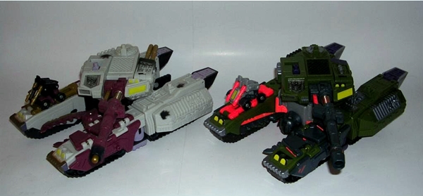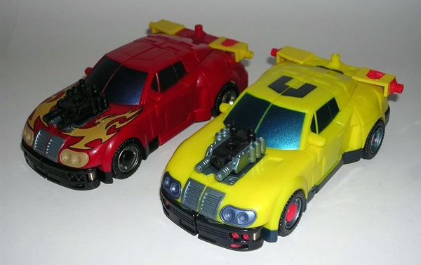So, there they are, Rook and Crosswise, and they are an odd pair in the world of Minicons. Don’t ask me which one is which, because I don’t know. And for godsakes, don’t tell me, because I don’t care. What do they turn into? Well each one on their own does serve a special function… they’re basically like headmasters, but before we get to that they can combine into one robot rider for Sideways.