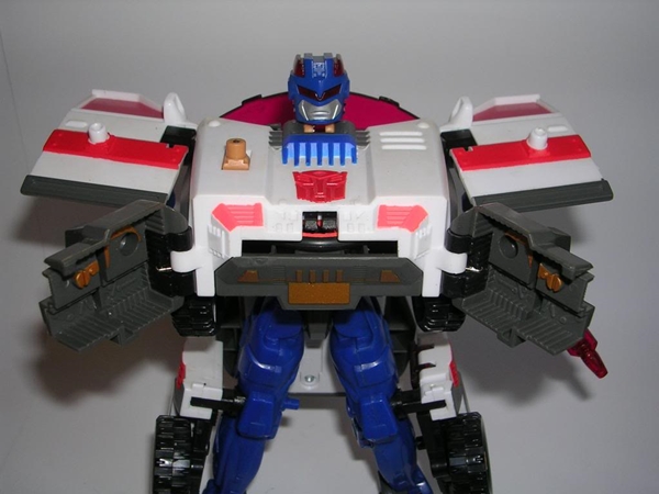 In a lot of ways, this is a fun figure and I feel bad about not embracing the Headmaster gimmick here, just because Hasbro should get points for trying it. It’s a neat feature, I kind of like it, but I never display this guy with the faction heads. I just prefer to go with the stock figure and stand his combined Minicons in front of him. Unless he’s displayed in alt mode and in that case I always have the two combined and riding him. Of course, Hasbro repainted this mold and used it again in the Energon line for Rapid Run, but I’ll save that for another day. Maybe next week I’ll have some new Generations figures to look at. If not, it’ll be another nostalgic trip to the Armada tote.