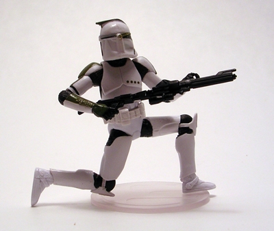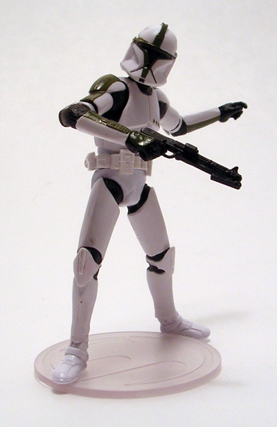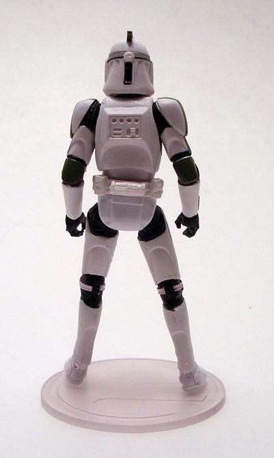 These ships continue to impress me with the intricacies of each sculpt, as Slave-1 features all the panel lines, vents, cables, and other bits and bobs that I would expect to find in the larger 3 3/4-inch scaled vehicle. The plastic used here is pretty light, but it still holds the details of the sculpt very well. A good part of the ship is just bare gray plastic with a light wash, but you do get some instances of paintwork, including the dark blue, green, and yellow trim in all the right places. There isn’t as much convincing weathering on this ship as there was on the X-Wing, but Slave-1 looked a lot less battered in Attack of the Clones than it did later on under Boba Fett’s stewardship, so I’m thinking what’s here is appropriate.