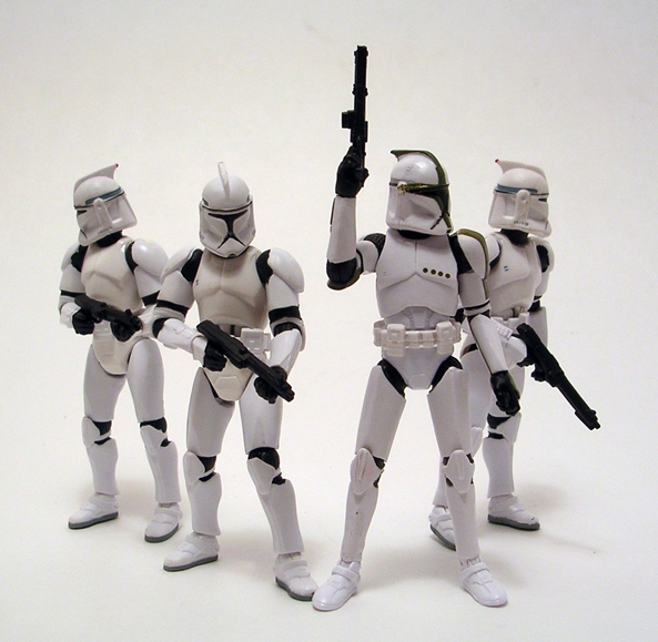 The gyro scoping gimmick found in the original Kenner Slave-1 is recaptured here, so as you maneuver the ship from its horizontal landing posture to its vertical flight mode, the “wings” will remain parallel to the ground. The two laser cannon at the end of the ship’s tail can be rotated 360-degrees independently of one another. Let’s take a quick look at the figures and how they can interact with the ship!